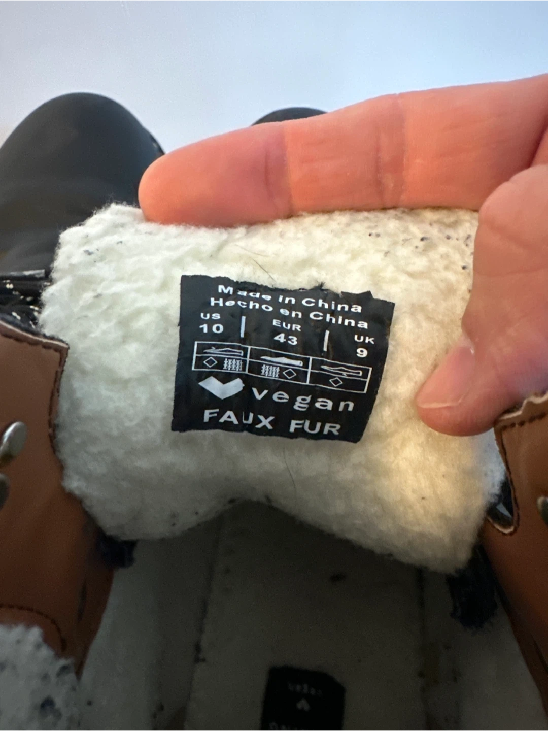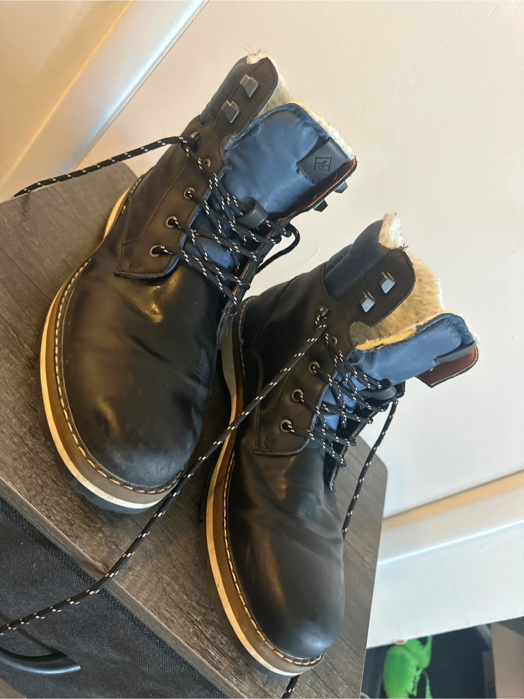 Selling a pair of Call It Spring men's winter boots in size 10. They are black with a faux fur lining to keep your feet warm and cozy during the cold months. These boots are perfect for everyday wear and are made with vegan materials