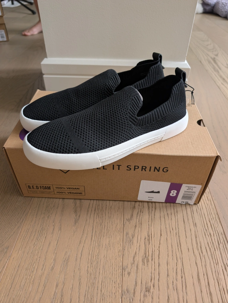 Selling a pair of Call It Spring sneakers! They're a size 8 and in black. These are 100% vegan B.E.D Foam sneakers. They come with the original box!
