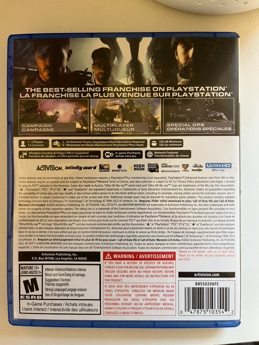 PS5 Disk Game Call of Duty: Modern Warfare 2 Released in 2022 Only played once