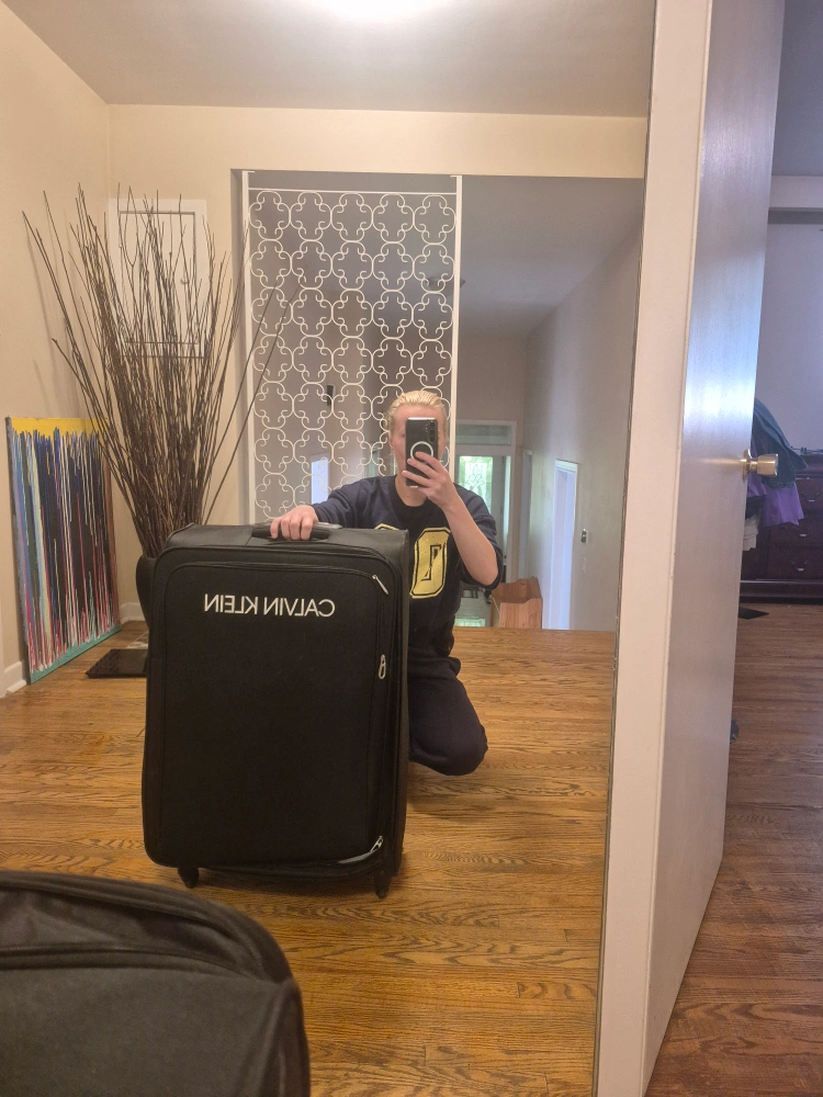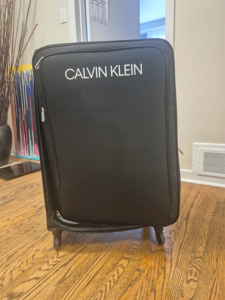Selling a Calvin Klein rolling suitcase in black! It's in great condition and ready for your next trip worn one time