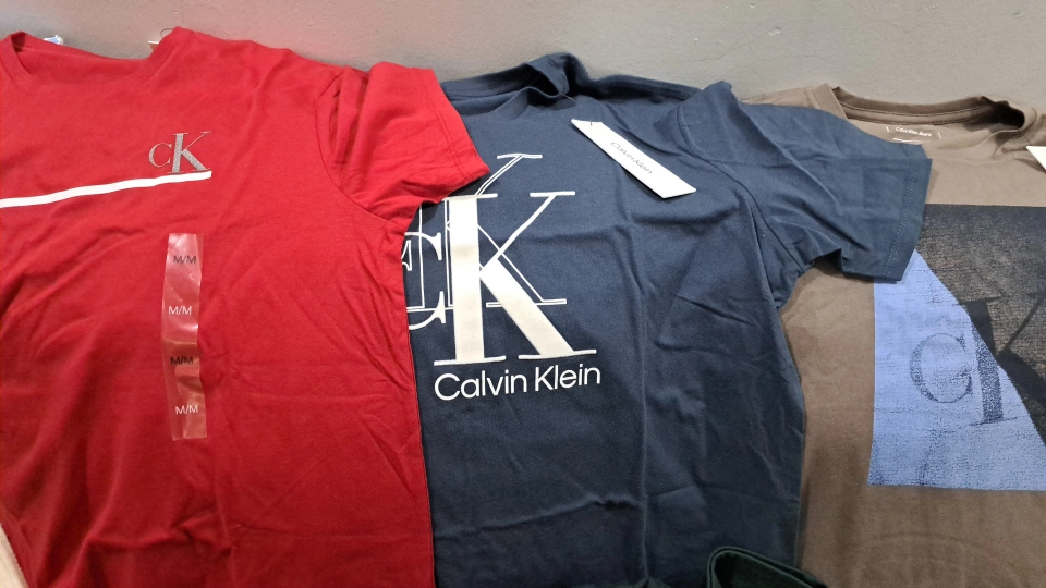 Three Calvin Klein men's t-shirts. Various colours and CK logos. Short sleeves. Good condition.