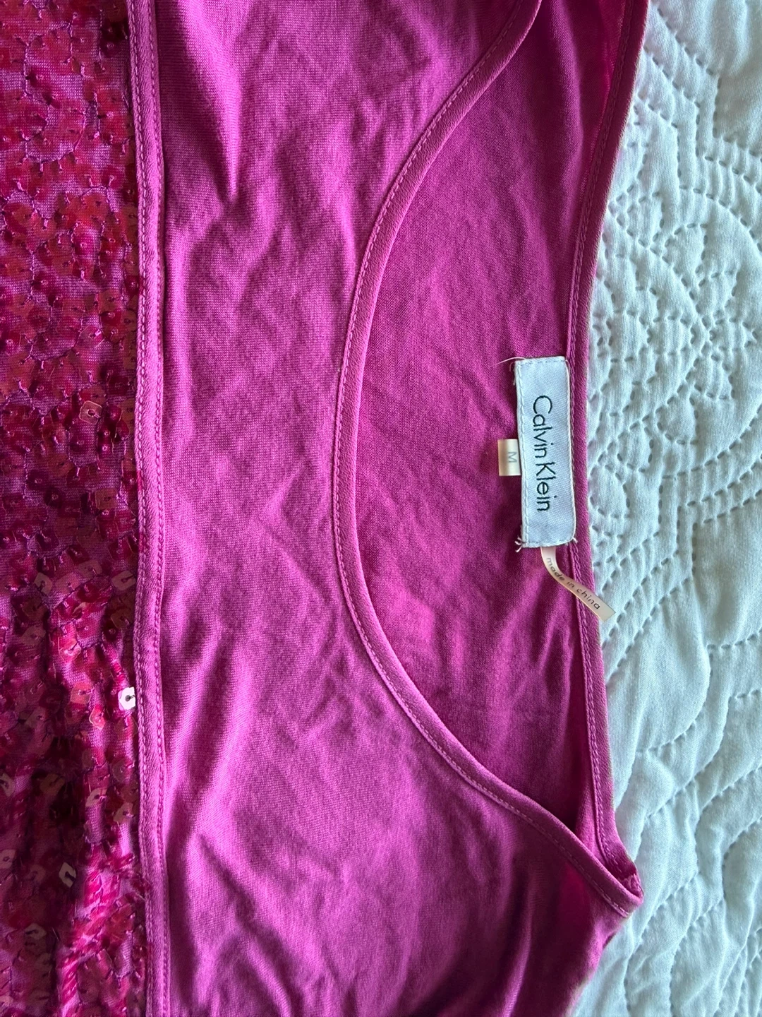 Selling a Calvin Klein top in a lovely shade of pink! It features a fun sequin design on the front. It's a size M and in great condition. Perfect for adding a bit of sparkle to your wardrobe!