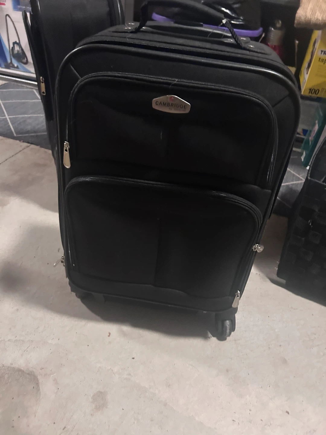 Selling a Cambridge carry-on suitcase in black. Cloth 2 wheel