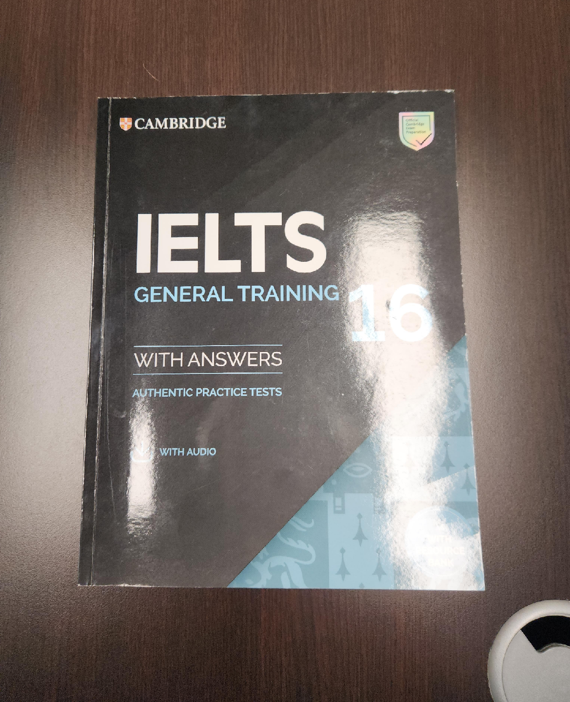 Selling a Cambridge IELTS General Training 16 book. It comes with answers and authentic practice tests, including audio resources for listening practice