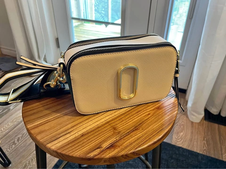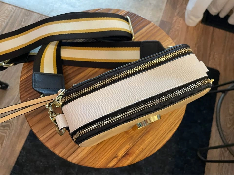 Excellent condition, brand new, used once just don’t reach for it. Not authentic. Cream front and back, white top and forest green sides and bottom. Gold zippers. Pick up in Greenbank