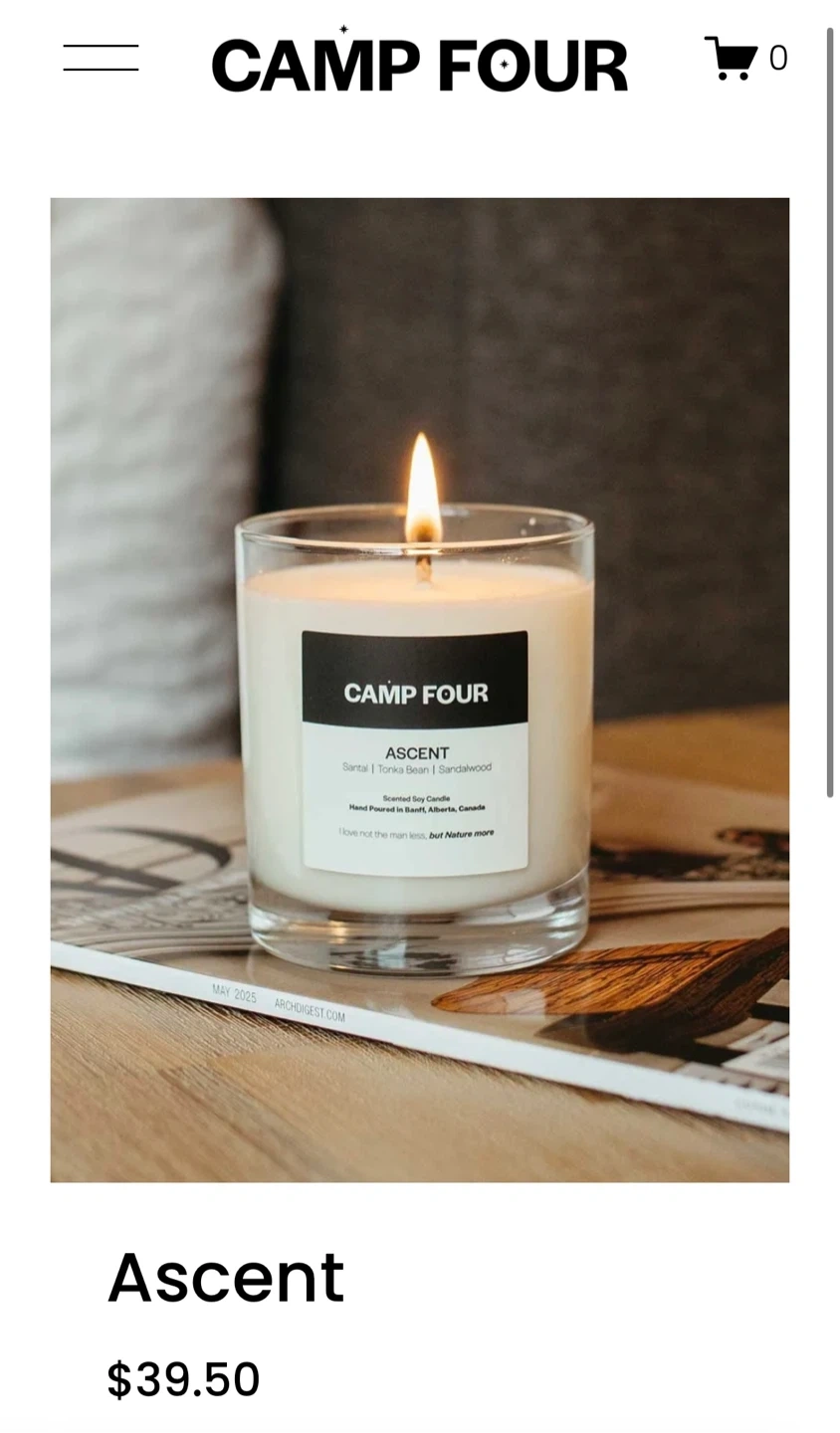 Selling a Camp Four Ascent Scented Soy Candle! This candle is hand-poured in Banff, Alberta, Canada and comes in a 9oz (255g) size. The scent is a blend of Santal, Tonka Bean, and Sandalwood. Originally bought for $39.50, it comes with the box