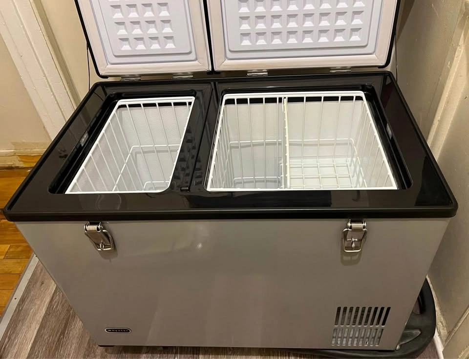 Portable DualZone Fridge Freezer 62 Quarts (Both 110 and 12 Volt Plug Included) - can be all fridge or all freezer or half & half, set temp for each compartment. Whynter is one of top brands for high capacity camping RVing type fridge freezer, can hold 60+ cans. Like New. Dimensions: 28 inch wide X 19.75 inch high X 18 inch deep. Sells on Amazon for $1500+ (tax included). $575 OBO. Pick up 10-minute drive East of downtown Ottawa.