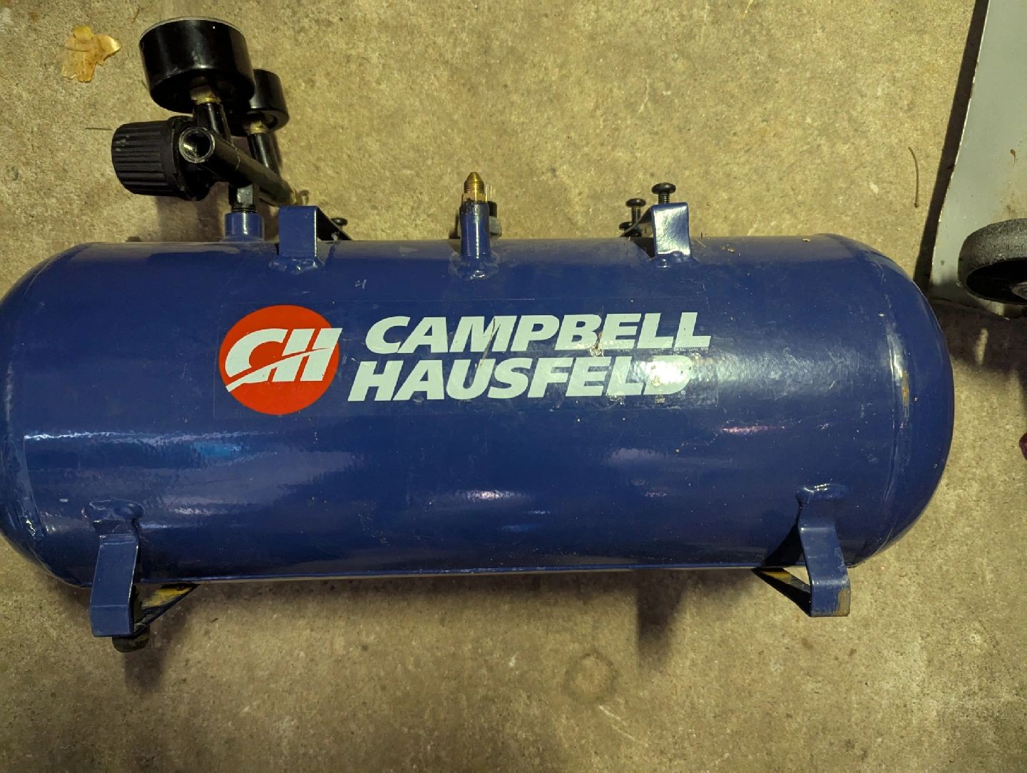 Campbell Hausfeld 2 gallon air compressor tank in good condition. has regulator, pressure switch and drain valve. Ready to help with your projects!