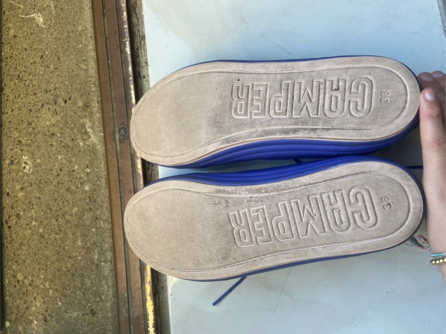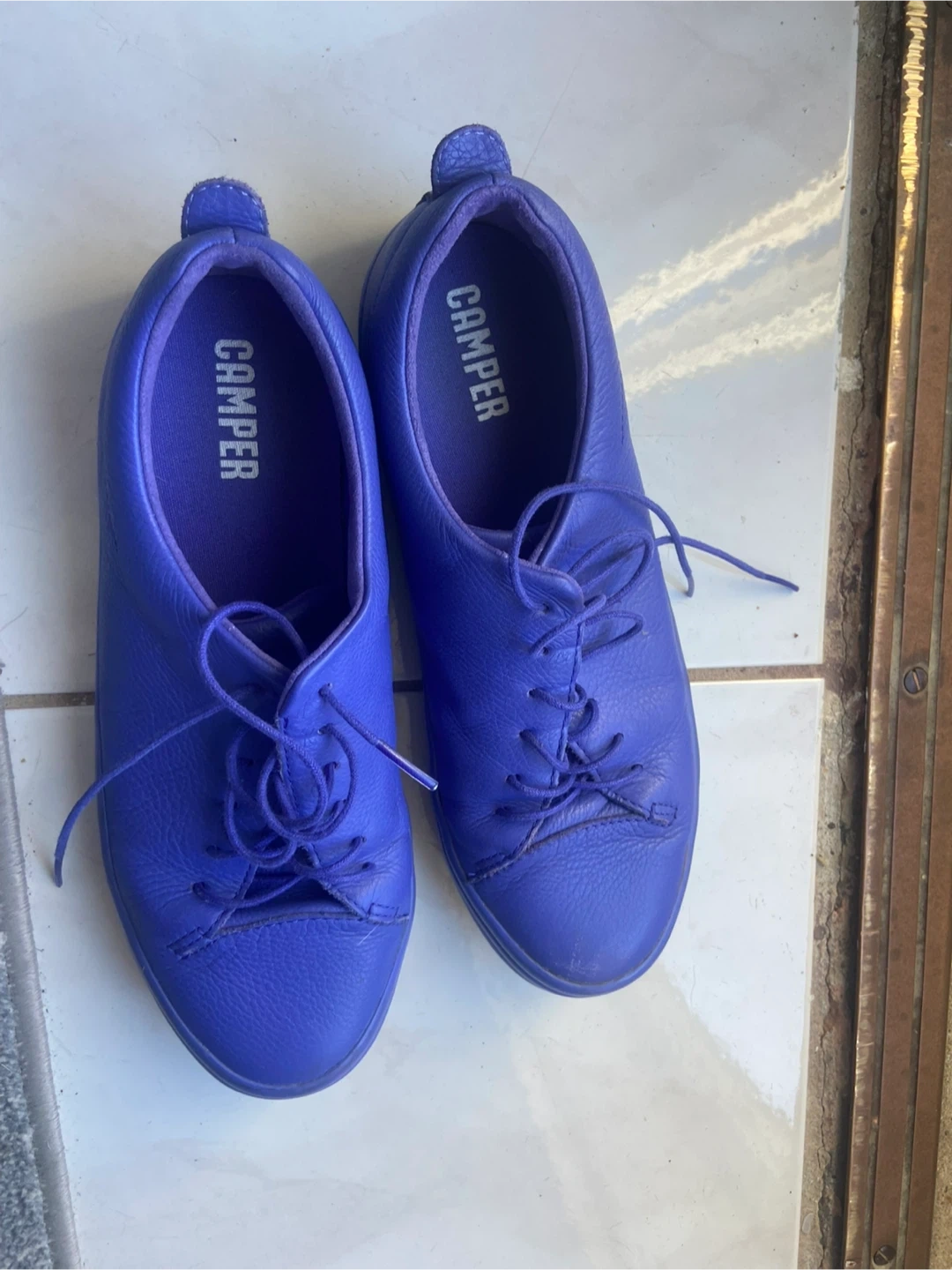 Selling a pair of Camper shoes in a vibrant blue colour. They are made of leather and are a European size 38. Please check the photos for the condition of the soles! Pick up at Bathurst and Lawrence