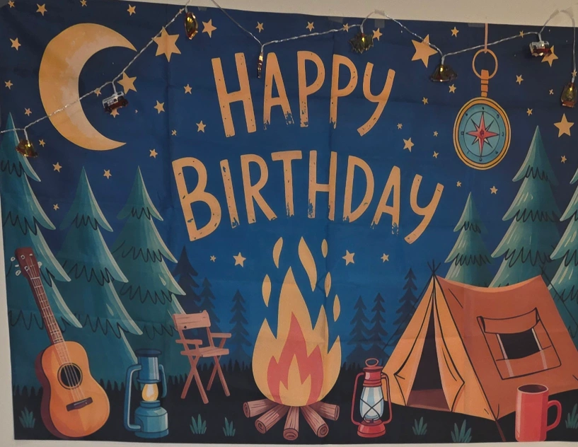 Get ready to celebrate a birthday with this fun camping-themed decoration set! It includes string lights featuring cute camper designs and decorative toppers for cupcakes or other treats. Perfect for creating a festive atmosphere for your little one's special day
