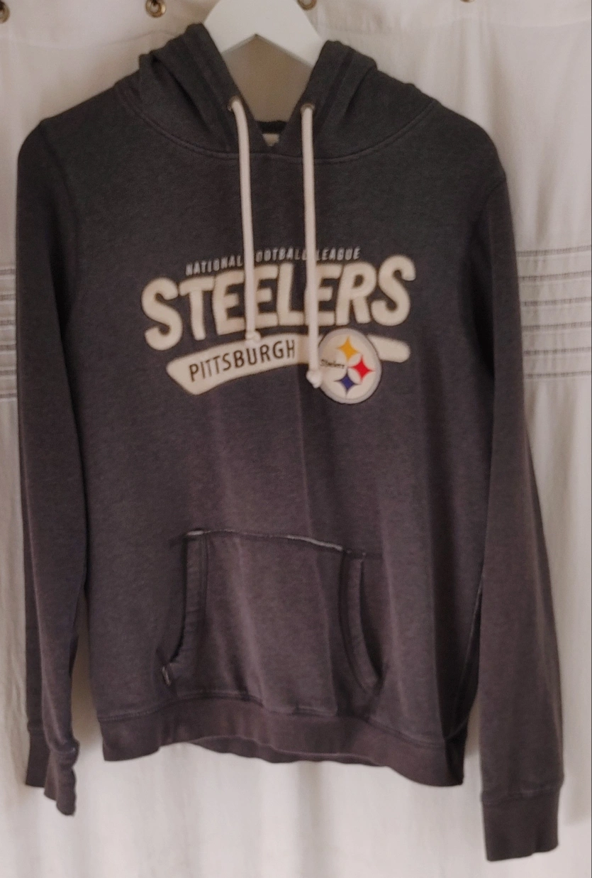 Campus Crew Pittsburgh Steelers grey hoodie. Womens size XL and in great condition! Front hand kangaroo hand pocket and drawstring on hood. No rips, stains or fraying. Smoke free home pick up Mt.Brydges cash only.