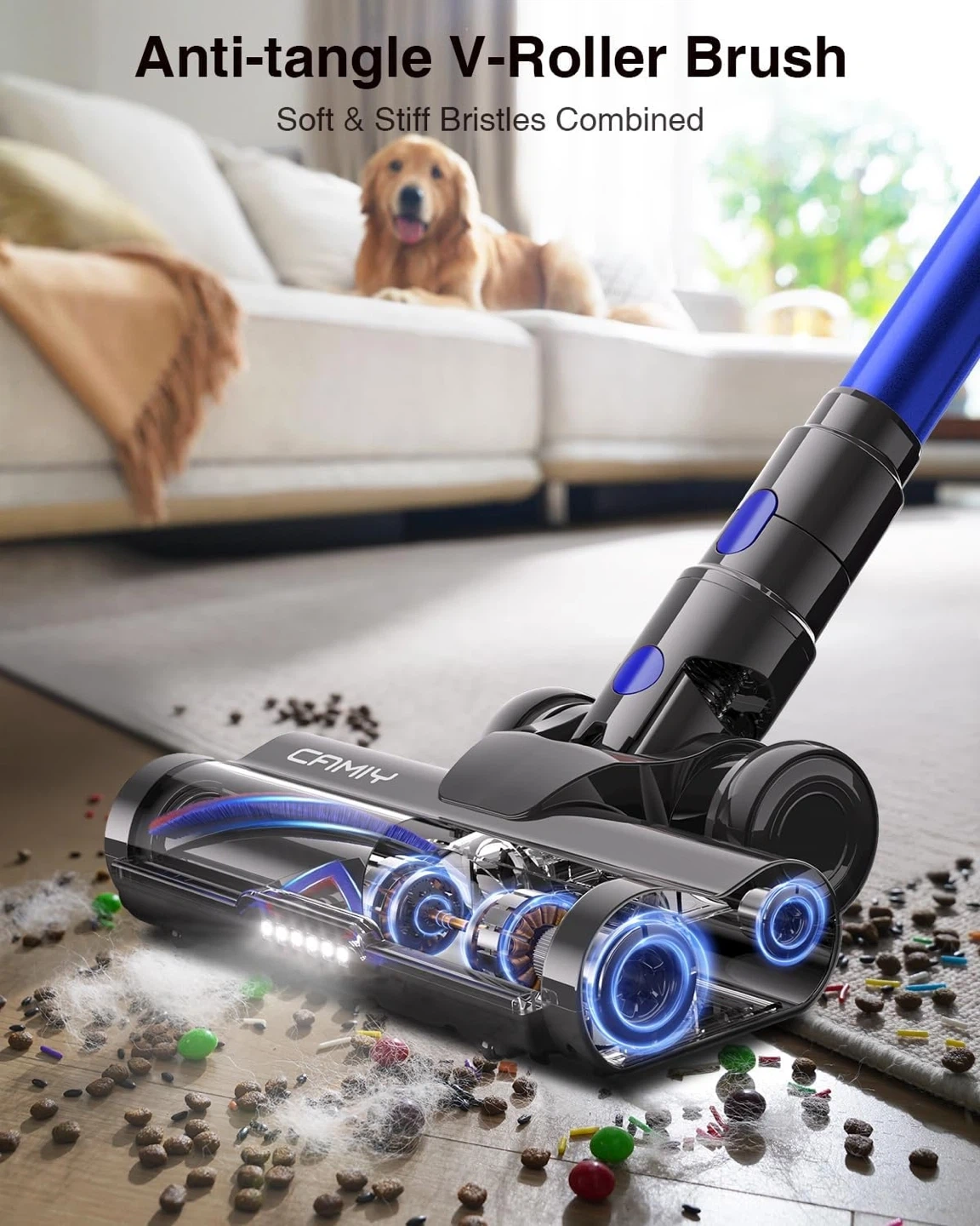 Selling a CAMY cordless stick vacuum cleaner. It has a 600W brushless motor and an anti-tangle V-roller brush. It can run for up to 65 minutes. It also comes with all the attachments and the box!