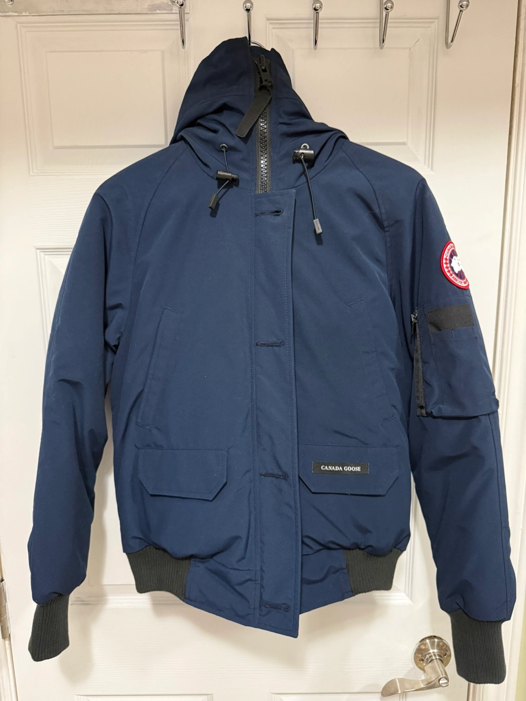 Selling a Canada Goose Chilliwak Bomber in Atlantic Navy. Never been used and still has the garment dust bag. Bought at $1,375 selling for only $800.