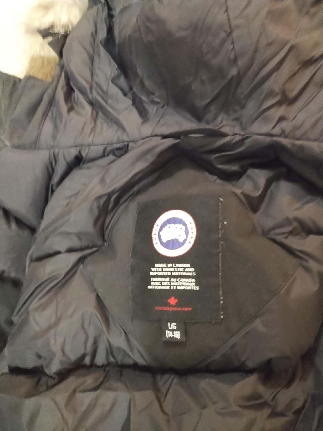 Selling a Canada Goose down bomber jacket. It's in great condition and perfect for the Canadian winter! The jacket is a size L (14-16). Children's size.