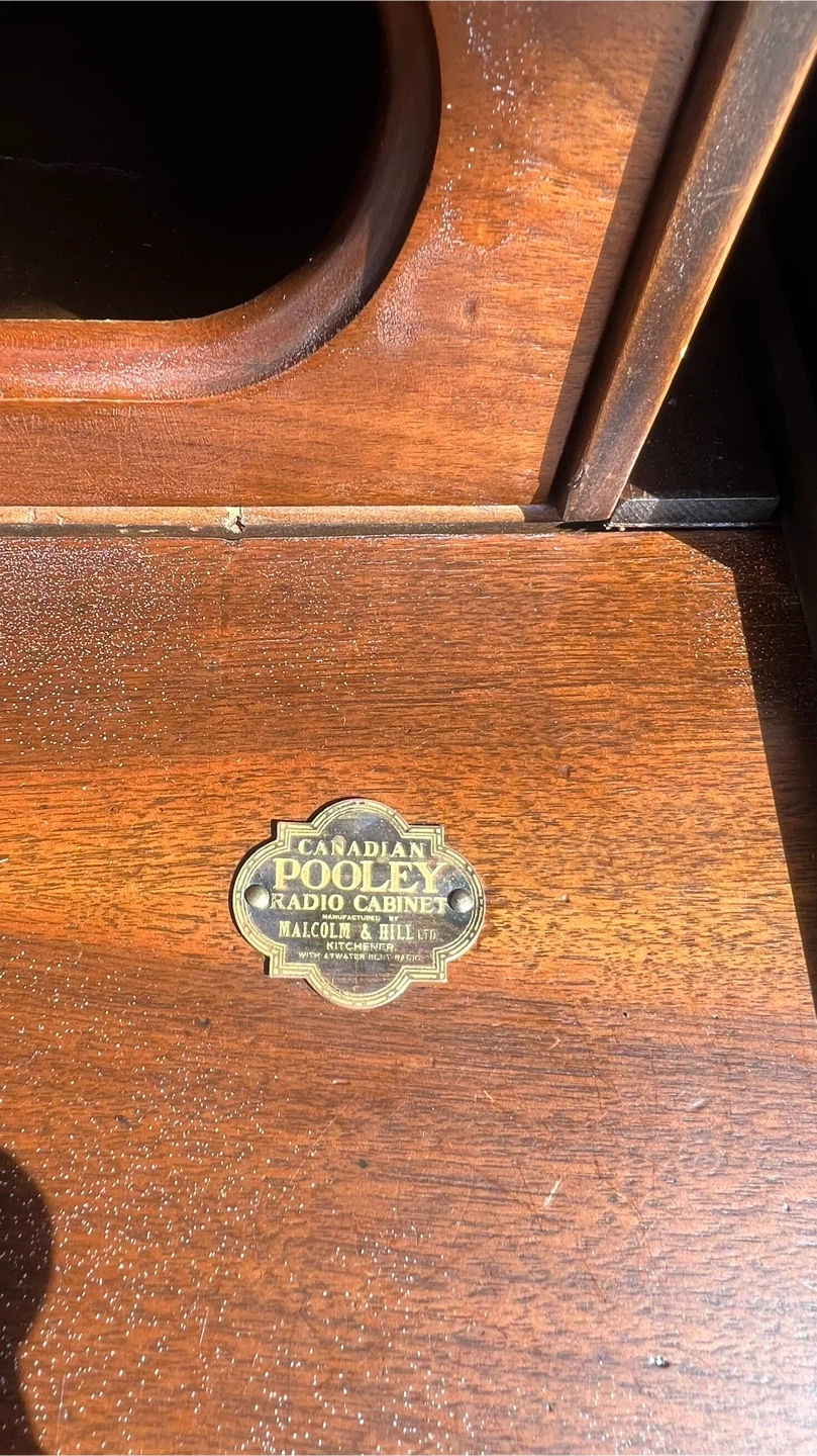 Selling a Canadian Pooley Radio Cabinet. It's in good condition and has a beautiful vintage look. Perfect for adding a touch of classic style to your home!