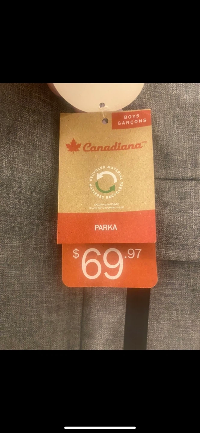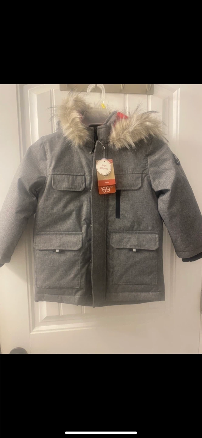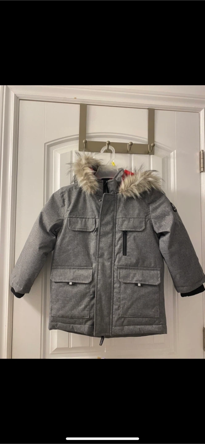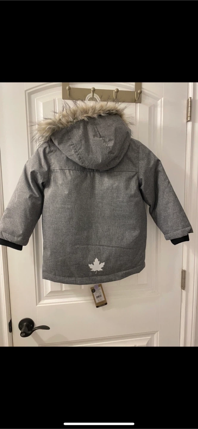 Keep your little one warm this winter with this Canadiana winter jacket! It's in great condition and features a stylish grey exterior with a cozy red and black plaid lining. - Brand: Canadiana - Size: XS (4-5) - Colour: Grey with red/black plaid lining Pick up Port Elmsley message please Originally bought for $69 plus tax