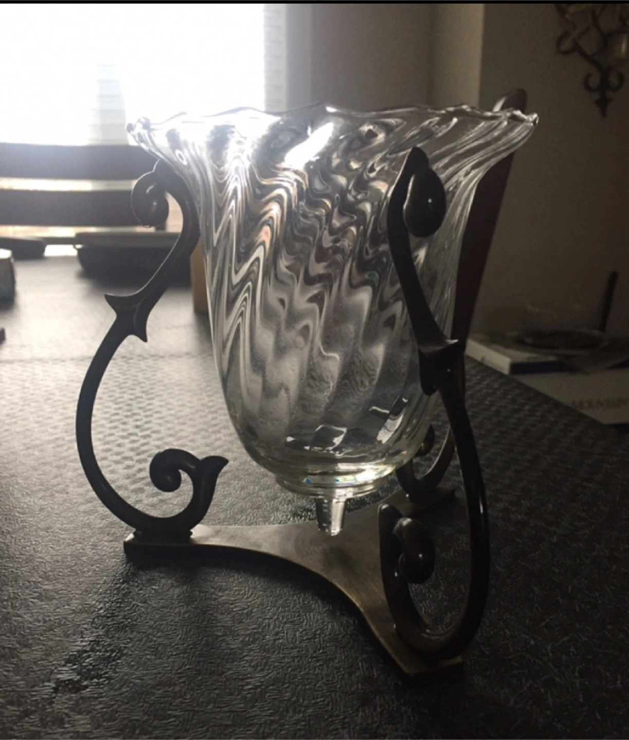Offered is a set of two wall sconces and one tabletop candle holder. They are embellished with metal accents. Purchased from PartyLite.