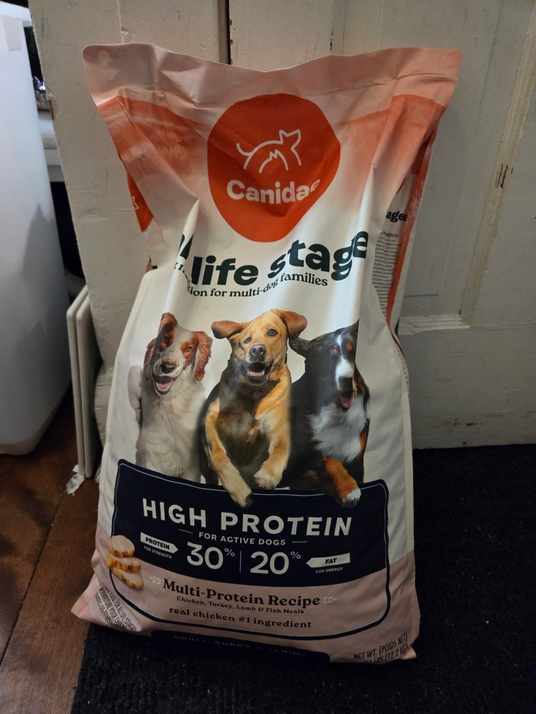 Selling a bag of Canidae All Life Stages High Protein dog food. It's a multi-protein recipe with real chicken as the #1 ingredient. Good for pets! Best by 2026 July 08 Manufacturing Date: 2025 January 07