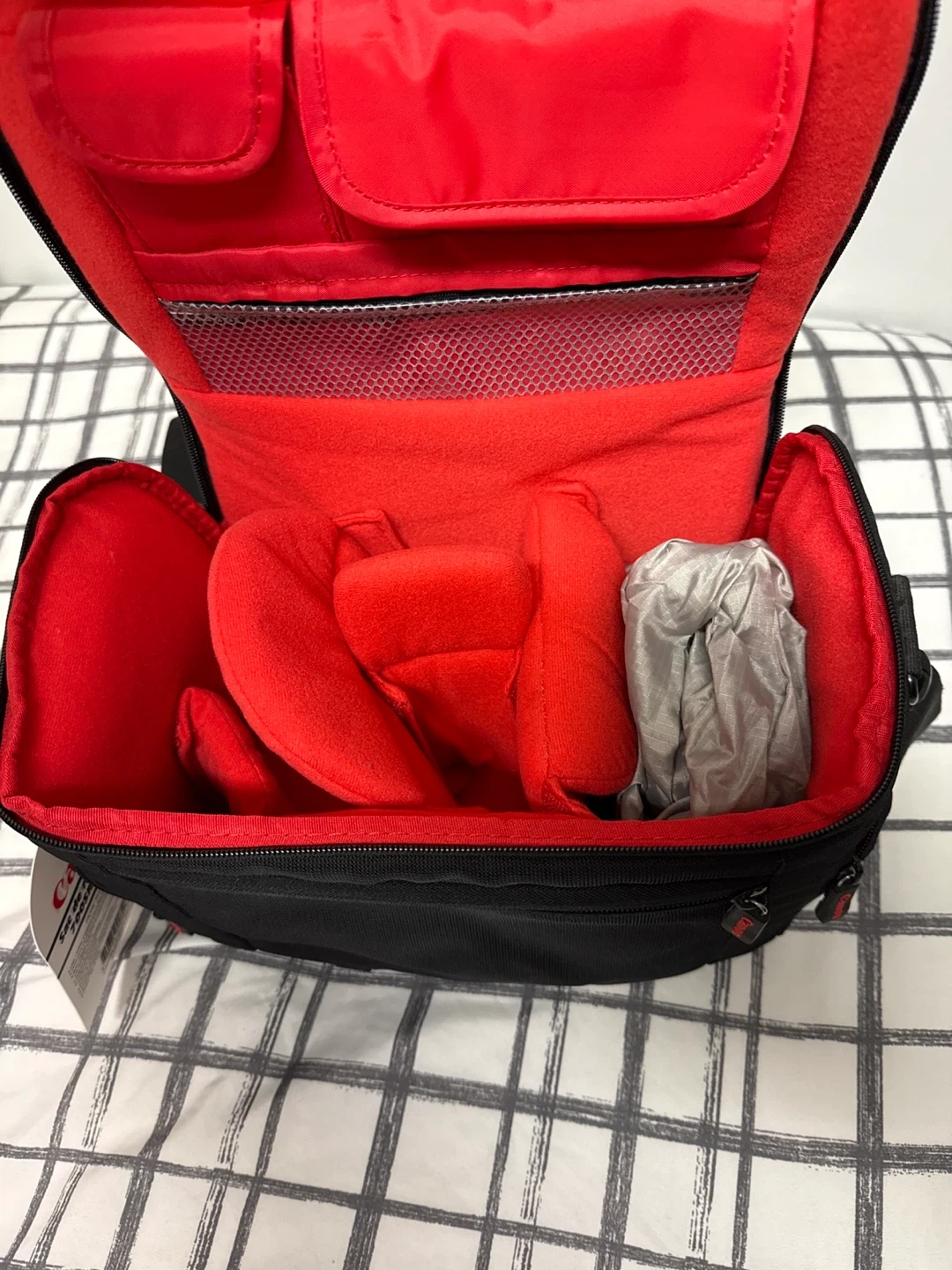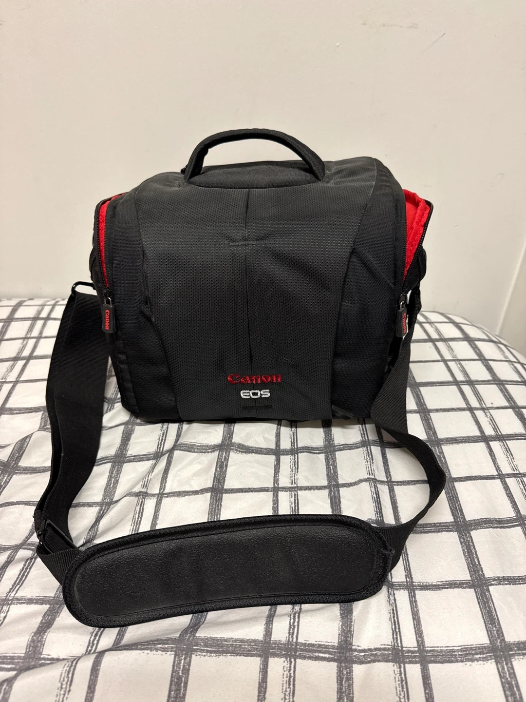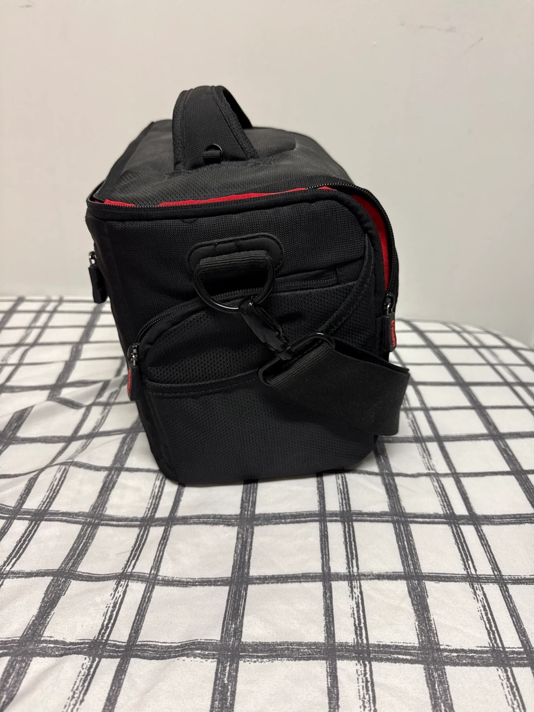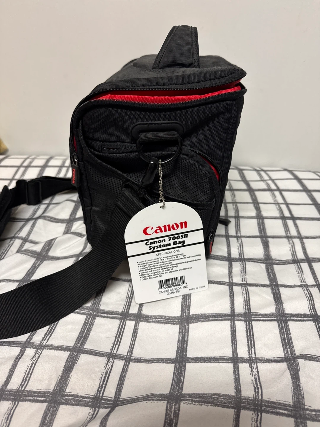 Selling a Canon 700SR system bag! It's in great condition and ready to protect your camera gear. - Holds 1 camera body with 2 to 3 lenses - Interior is fully padded for extra durability - Fully adjustable and removable padded dividers - Side and front zippered pockets - Fully adjustable and removable shoulder strap - Color: Black with red interior