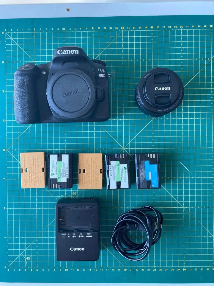 Canon 80d with 3 batteries and a charger. Canon 50mm lense. Mint condition. Everything works as new.