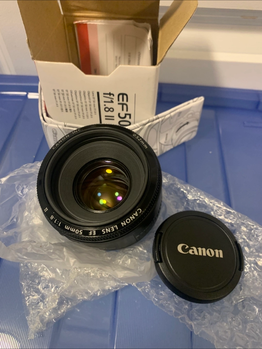 Up for sale is a pristine Canon EF 50mm f/1.8 II lens, a must-have for any photography enthusiast! This nifty fifty is known for its sharpness and beautiful bokeh, making it perfect for portraits, street photography, and everyday snapshots. It's lightweight and compact, so you can easily carry it around. I have the original box and documentation for you as well. Key Features: * Focal Length: 50mm * Aperture: f/1.8 * Lens Mount: Canon EF * Minimum Focus Distance: 0.45m / 1.5 ft * Filter Size: 52mm New open box Price is firm !