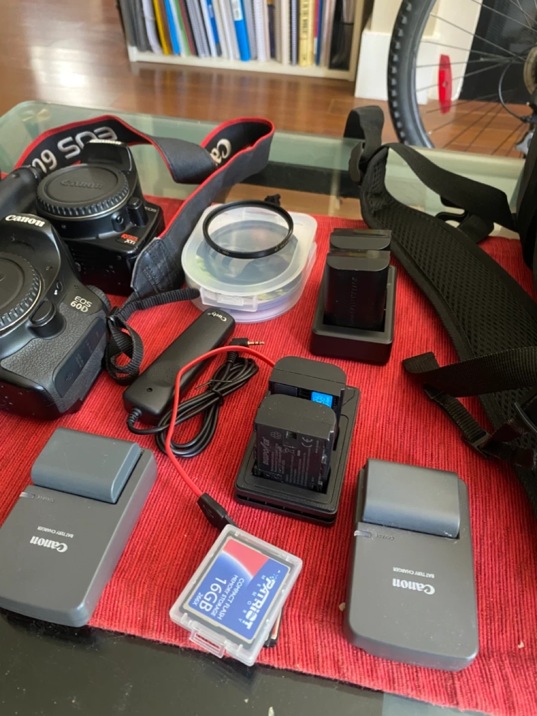 Selling a Canon EOS 60D camera body in good condition! Also included are two lenses: a Yongnuo 50mm f/1.8 lens and a Canon Zoom Lens EF 70-300mm 1:4-5.6 IS USM Ultrasonic lens. Great setup for getting started in photography!