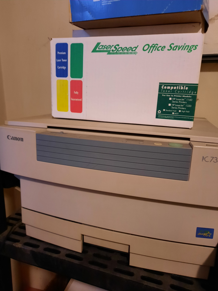 Canon PC photocopier includes new High Yield Toner cartridge. (cartridge alone is $69.95) photocopier still in perfect working condition; only used for personal use. Inexpensive cartridges - high yield. would be great for home office or even a small office very inexpensive per copy. NEW PRICE