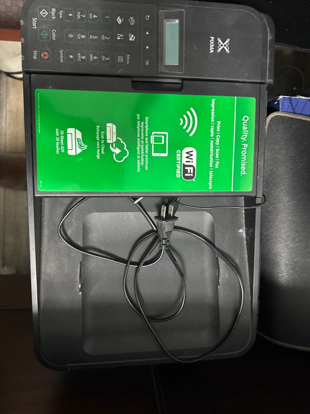 Selling a Canon Pixma printer that's perfect for printing, copying, scanning, and faxing. It's Wi-Fi certified, so you can easily print from your smartphone or tablet. It also has a 20-sheet ADF for convenient multi-page scanning and copying