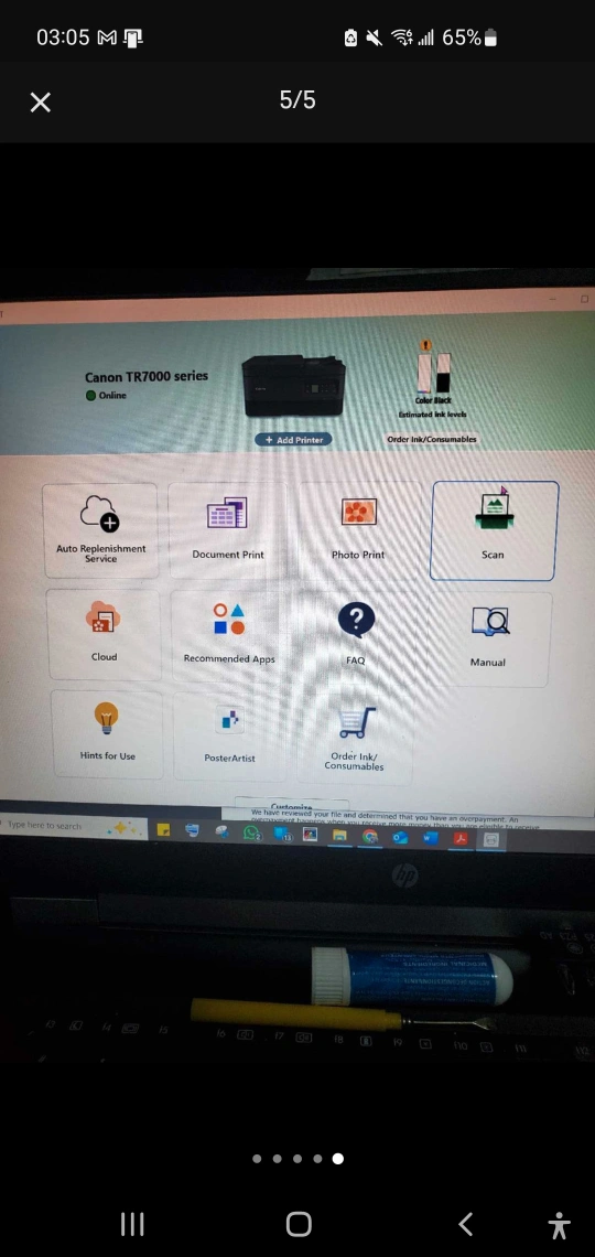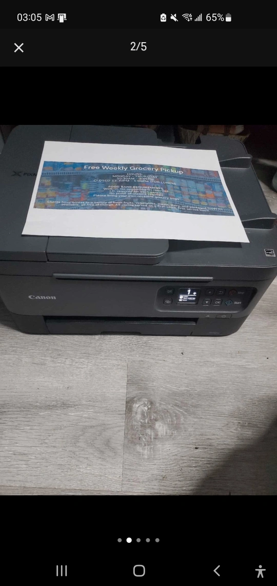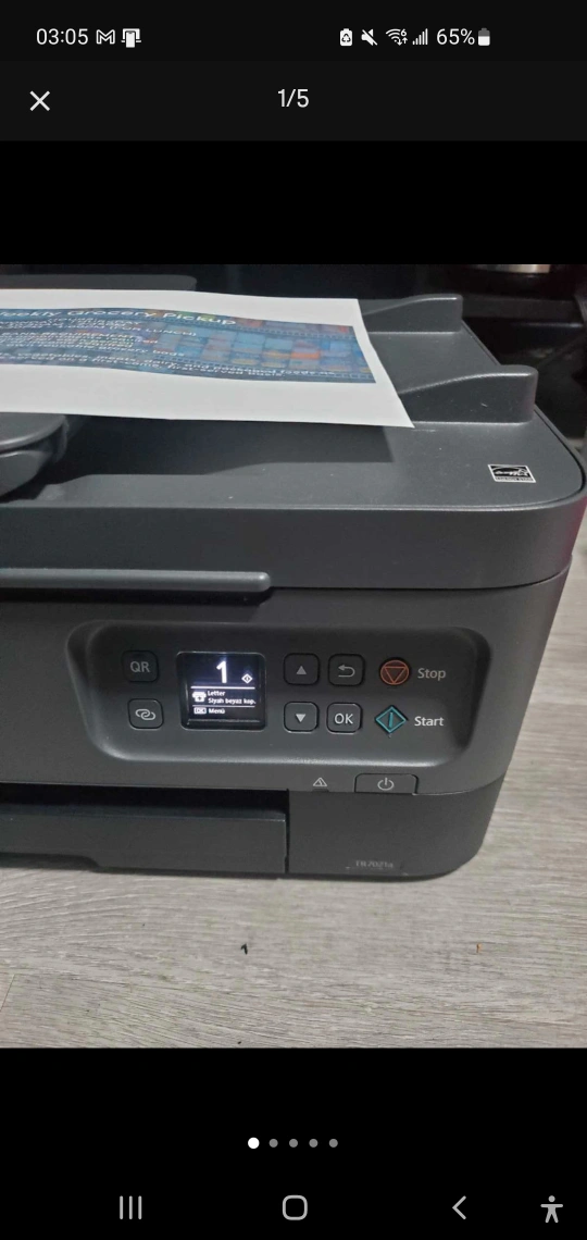 I'm selling Canon Pixma TR7020a all-in-one wireless colour inkjet printer, perfect for home or small office use, offering print, scan, and copy functions. Both sides printing. ***it's in good working condition. ***it still has 50% black ink and 10% colour ink , its pretty much rewdy to use. download Canon apps in store and print from your computer or phone. Additional specs include: * Connectivity: Wi-Fi, USB * Print Resolution: Up to 4800 x 1200 dpi * Paper Size: Up to 8.5 x 14 (Legal)