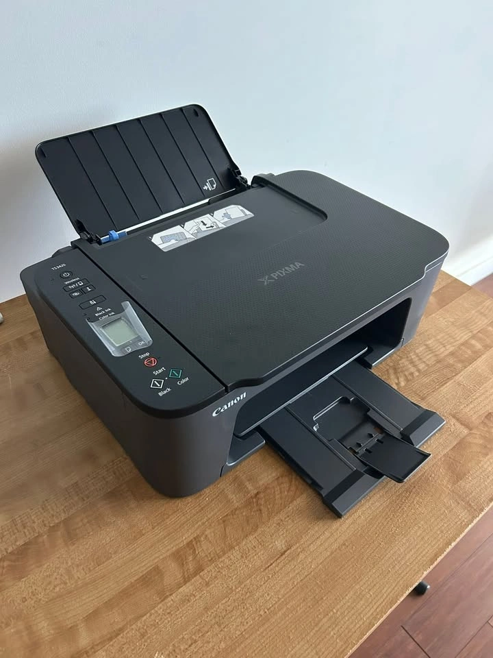 Barely used! Very affordable printer, perfect for home or student use. Prints great quality and super easy to set up. Includes a flatbed scanner too! Comes with box. Please message for arrange pick up. Thank you.