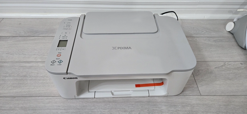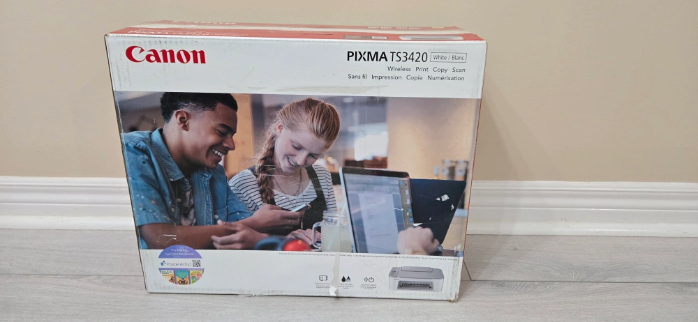 Selling a brand new Canon PIXMA TS3420 printer in white! It's still in its original box and includes all the components. Perfect for printing, copying, and scanning at home or in a small office. It's wireless too, so you can easily print from your devices. Comes with the instruction manual to help with setup!