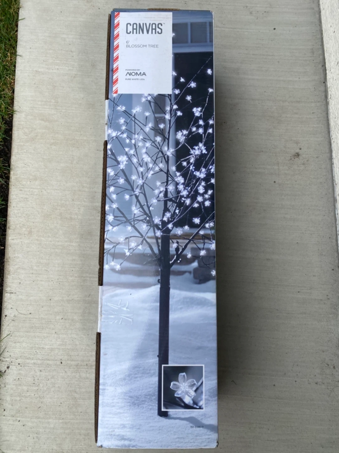 Selling a Canvas 6' CHERRY Blossom Tree powered by Noma pure white LEDs. It's still in its original box! This beautiful tree will add a touch of elegance indoor / outdoor Perfect for creating a cozy atmosphere during the holidays or any time of year