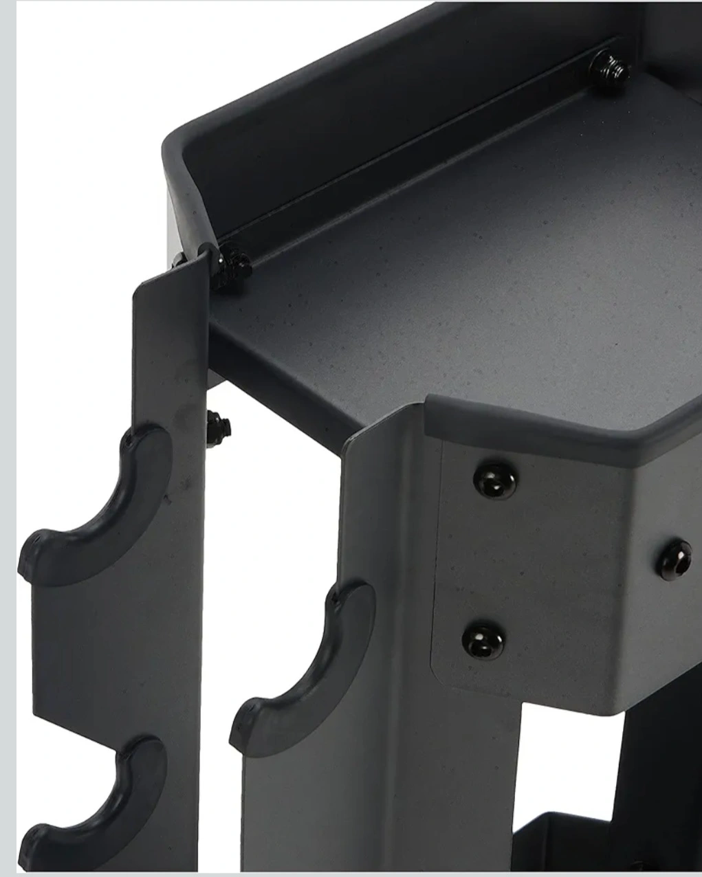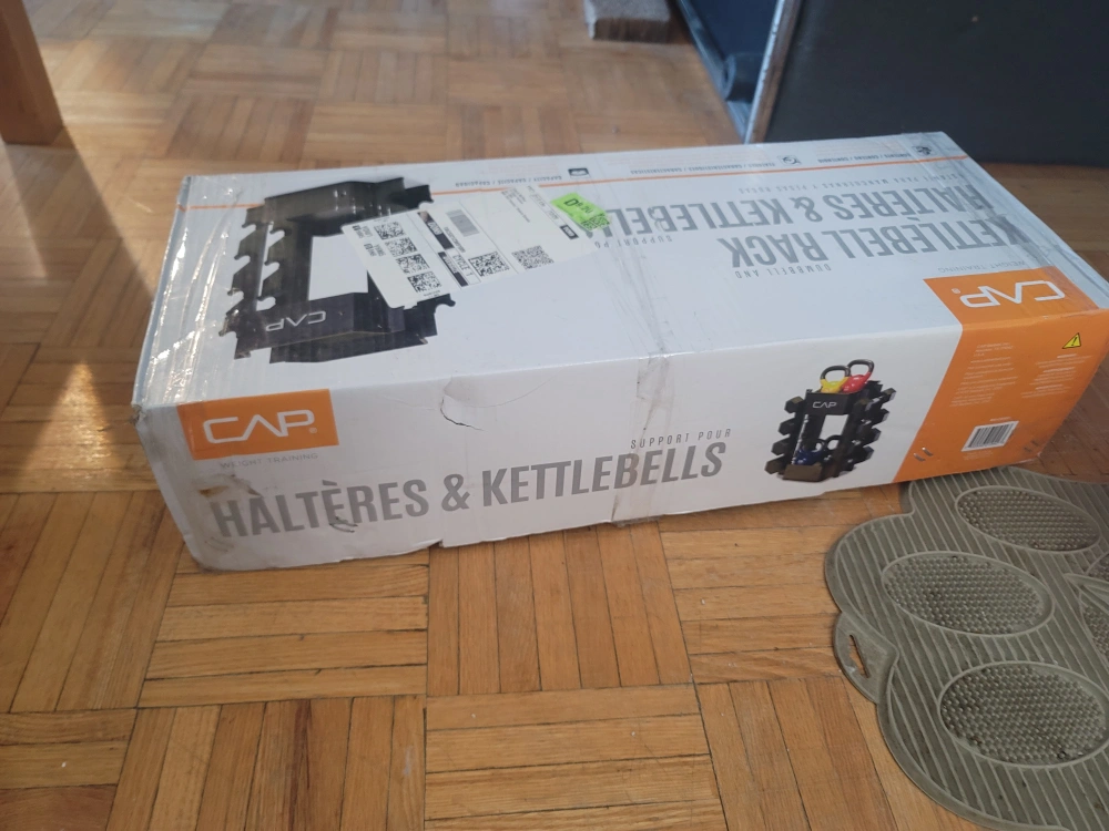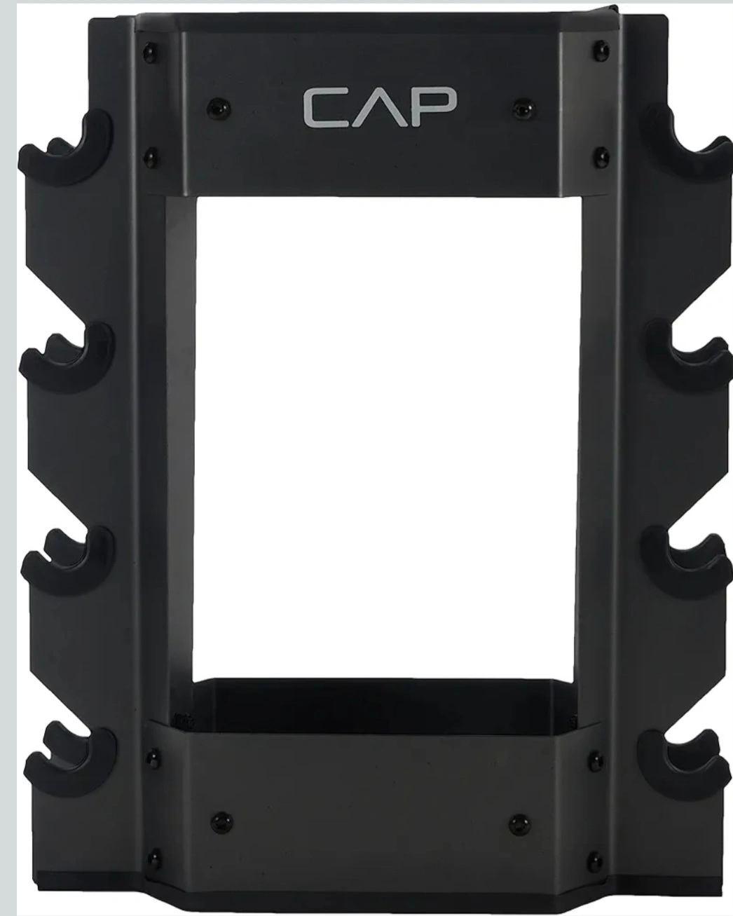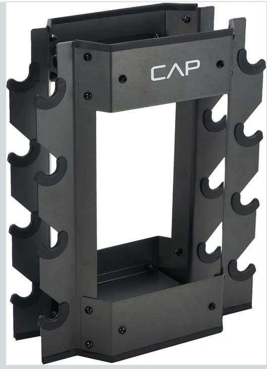 Selling a CAP Barbell dumbbell and kettlebell rack. It's in excellent condition and comes with the original box. This rack is perfect for organizing your weights and saving space in your home gym. It can hold both dumbbells and kettlebells! Holds up to 4 pairs of Dumbbells Includes two trays for additional storage Mfg. suggested max weight capacity is 225 lb.