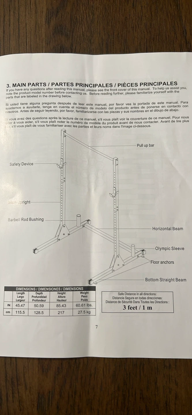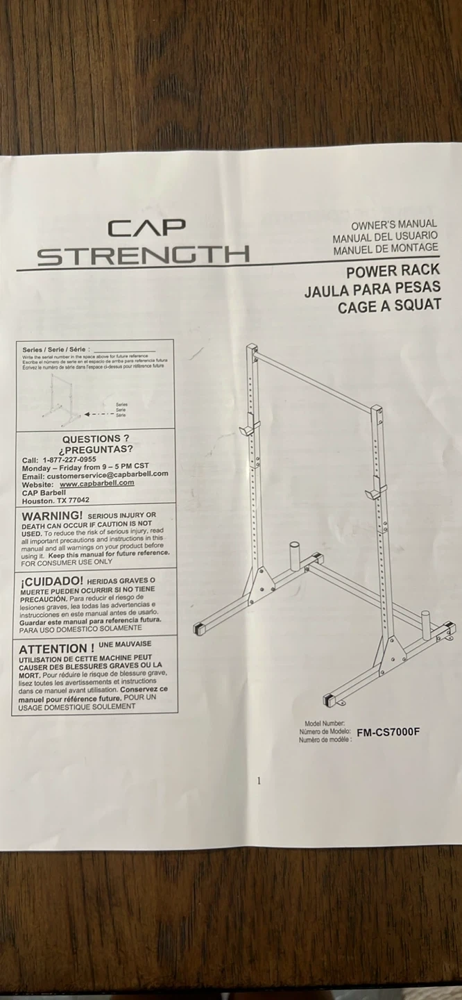 Selling a CAP Strength Power Rack, model FM-CS7000F. This power rack is perfect for setting up your home gym. It includes features such as a pull-up bar, safety device, and barbell rod bushing. The dimensions are 45.47 inches in length, 50.59 inches in width, and 85.43 inches in height