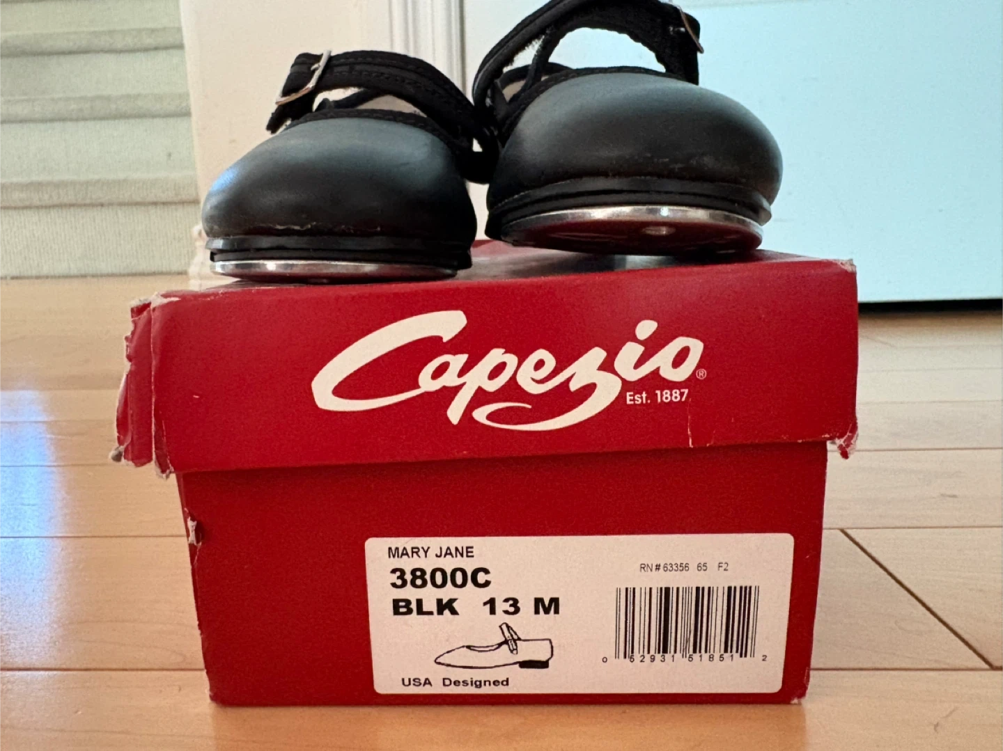 Selling a pair of Capezio Mary Jane tap shoes in size 13M. They are black and in good condition. Perfect for your little dancer!