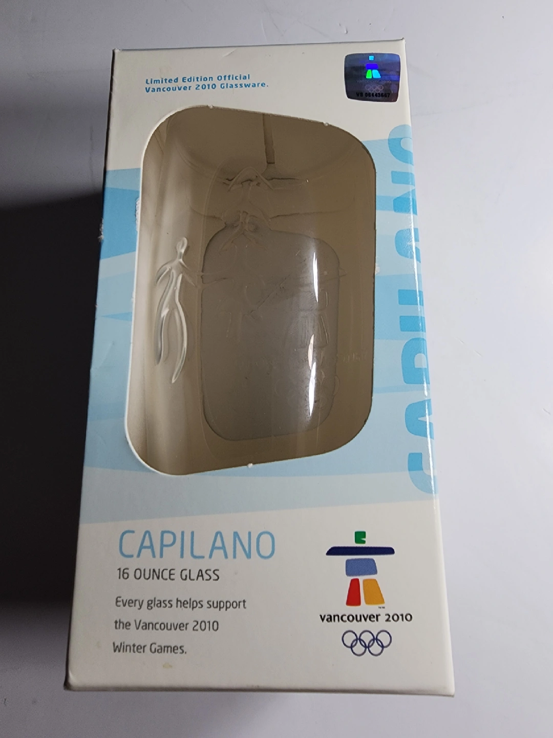 Selling a limited edition Capilano 16 ounce glass from the Vancouver 2010 Olympics. It's in the original box! This glass is a part of a Vancouver 2010 set, and every glass helps support the Vancouver 2010 Winter Games