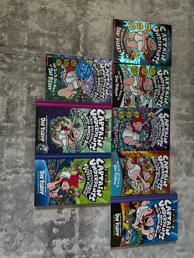 Captain Underpants book series 1-8 for sale. 3 hard cover and 5 soft cover fun series for children to read!