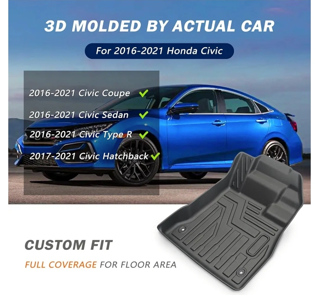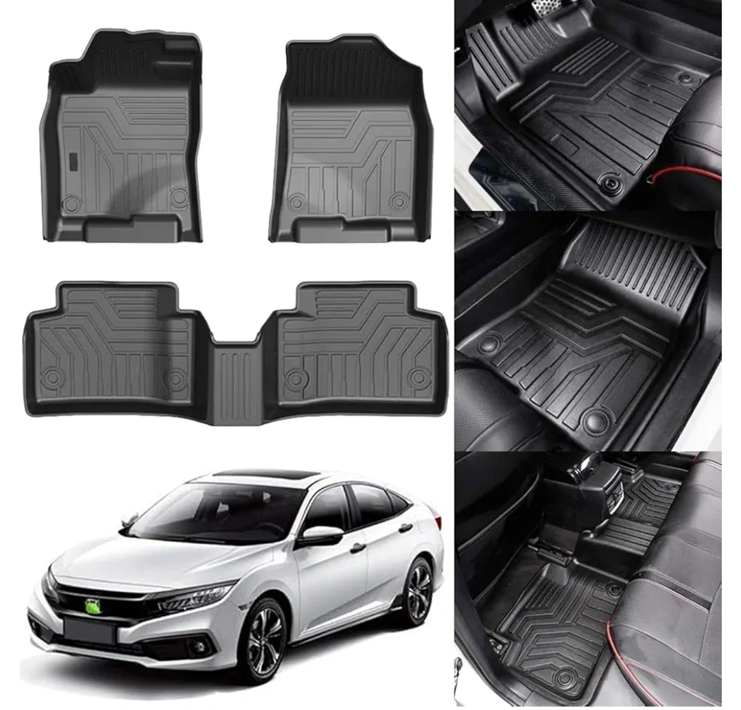 KUST Floor Mats for 2016-2021 Honda Civic Sedan/Civic Hatchback/Civic Type R, Civic All Wearther Floor Mats, TPE 3D Car Mats 2 Row Front & Rear Liner