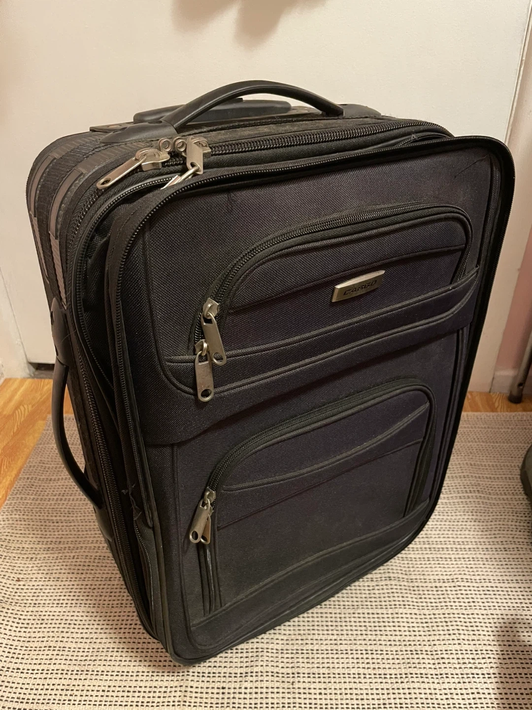 Selling a carry-on suitcase from Cargo. Gently used and still in great condition. A tiny lock is attached to a zipper (you can still open the compartment- can easily be snipped off! Shown in photo).