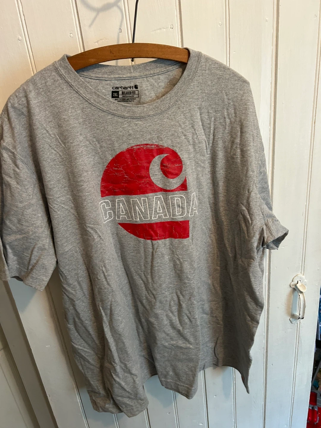 Carhartt brand. Short sleeve graphic T-shirt. Grey with red Canada logo graphic. Size men’s 2x. Brand new condition $30 Pickup between kincardine & ripley or I can arrange delivery in port Elgin-Owen sound, walkerton-Durham, wingham-listowel-kw/cambridge, goderich-bayfield, Woodstock & Arthur-Orangeville-Newmarket-Lindsay-Peterborough AREAS.