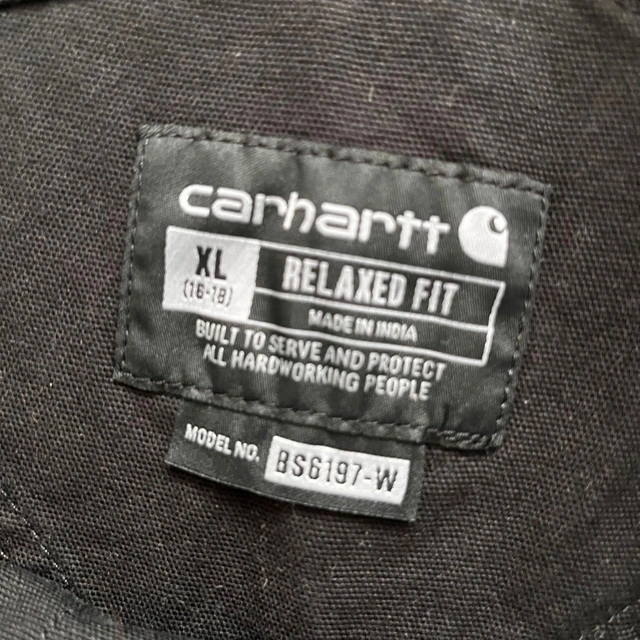 I'm selling a pair of Carhartt black denim overall shorts in size XL (16-18), perfect for a relaxed fit and durable wear! Being that these are not brand new, they have been gently worn and are in good condition, ready for someone else to enjoy. Here are some details: * Brand: Carhartt * Size: XL (16-18) * Colour: Black * Fit: Relaxed * Material: Denim Just so you know, if you're reading this, the overalls are still up for grabs!