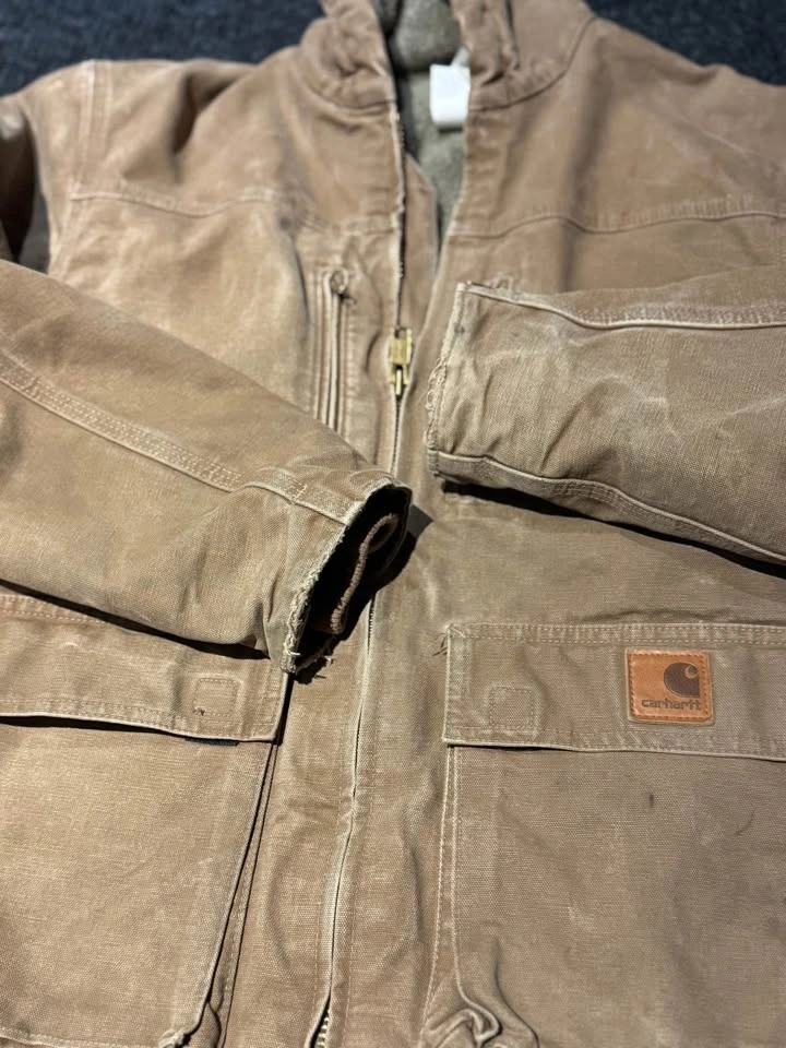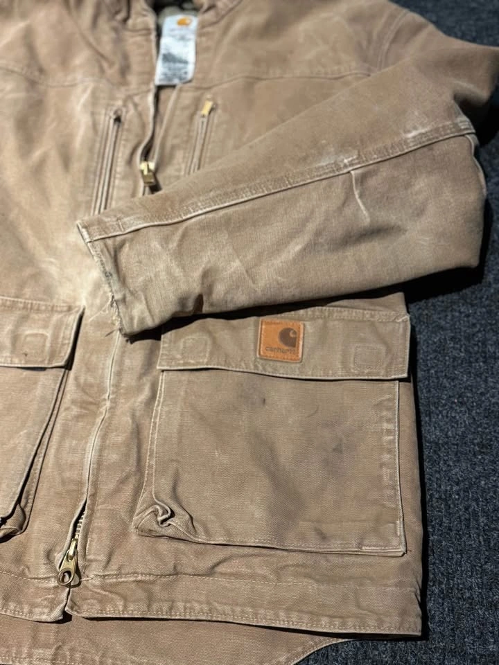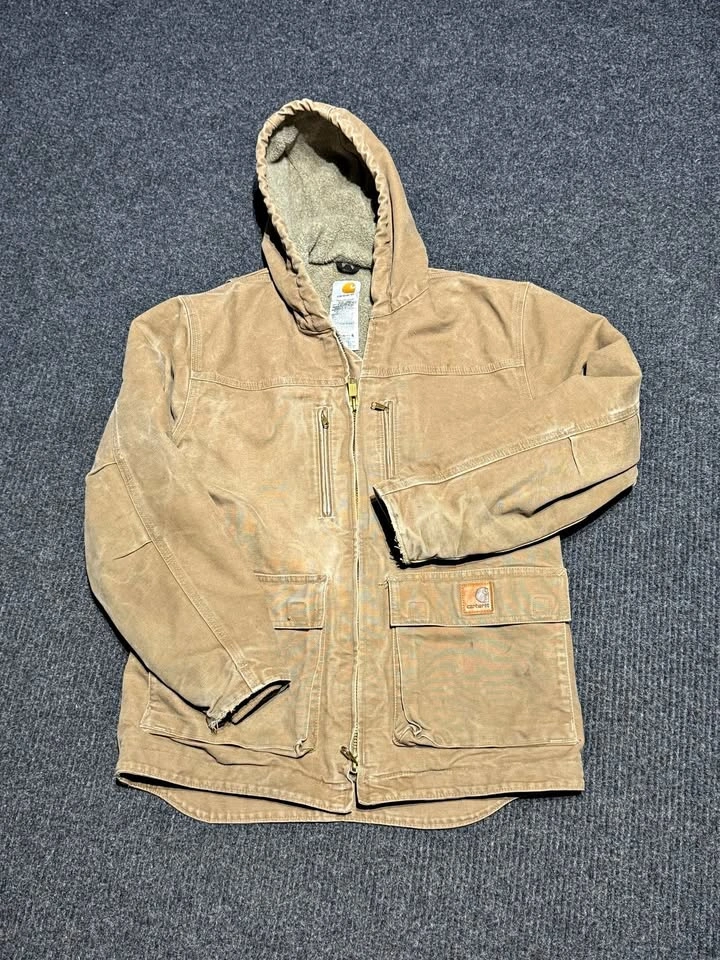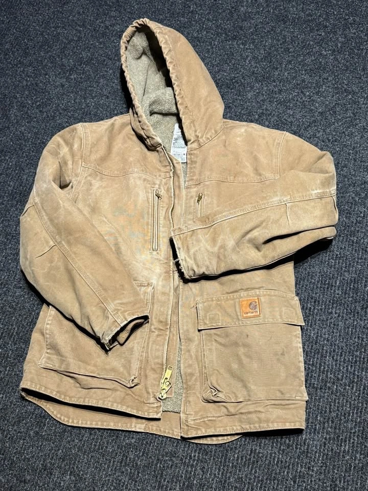 Size: Men's Small Color: Frontier Brown • 12-oz. cotton sandstone duck • Sherpa lined body • Quilted nylon lining sleeves • Two chest pockets with vertical zip closures + Two lower pockets with hook-and-loop tap closures • Separate side entry handwarmer • Two inside pockets • 3-pc. hood with drawcord closure • Internal rib-knit storm cuffs Pick up in Lewis Estates