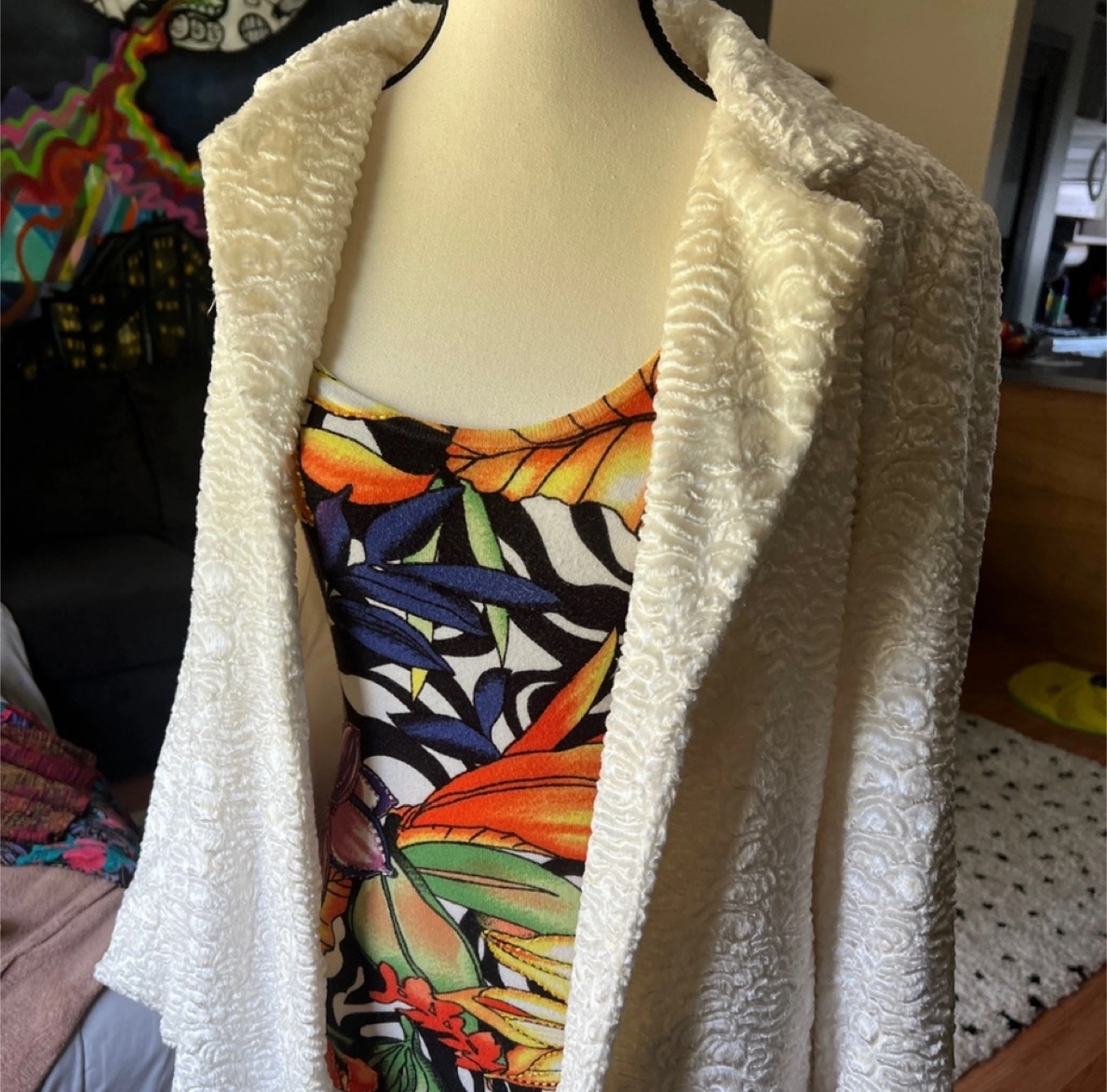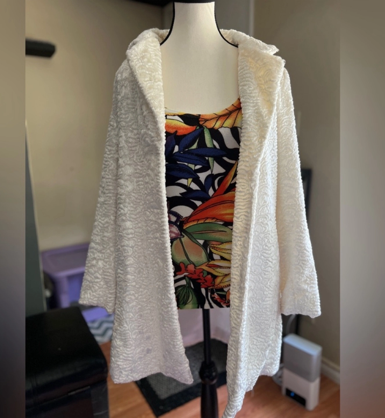 Selling a stylish white textured coat. It's in great condition and would be a lovely addition to your wardrobe!l Has front button closure. Size 4