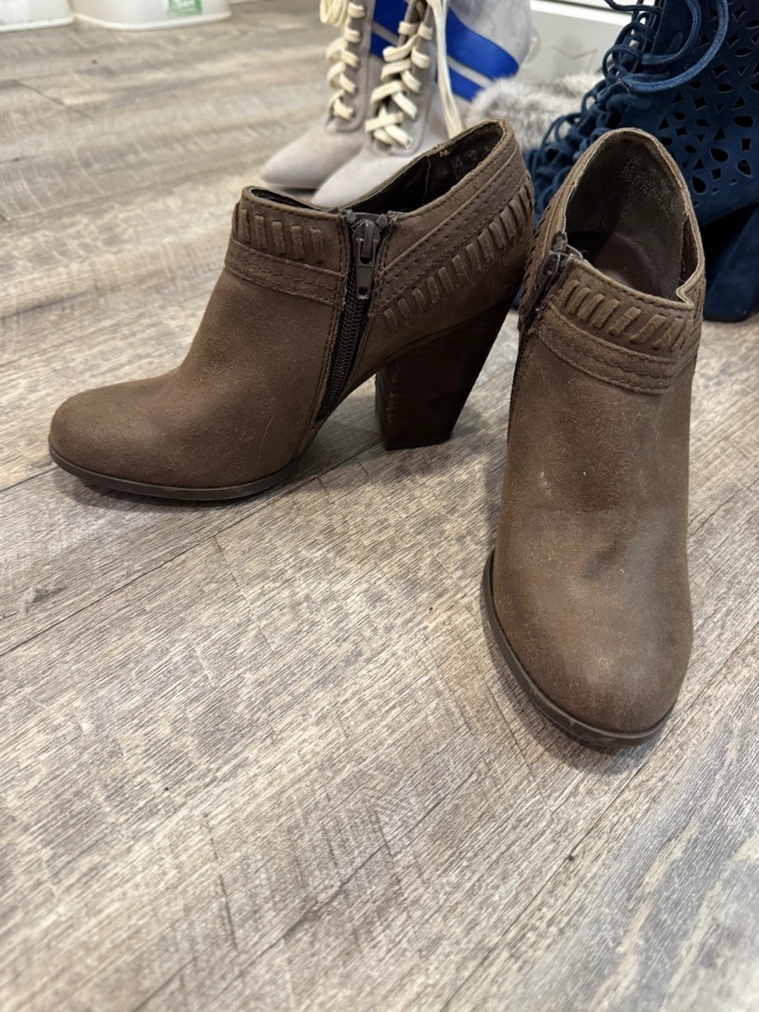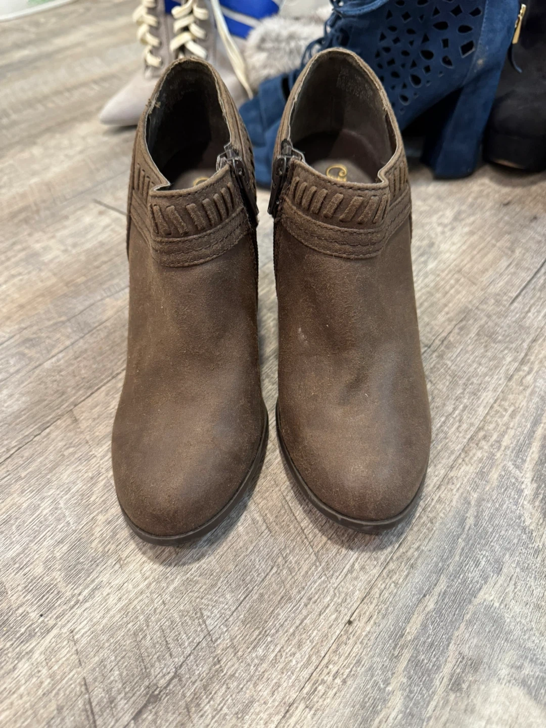 These Carlos by Carlos Santana ankle boots are a stylish addition to any wardrobe! They come in a beautiful brown colour and are a size 6. The boots feature a fabric upper and a synthetic balance.