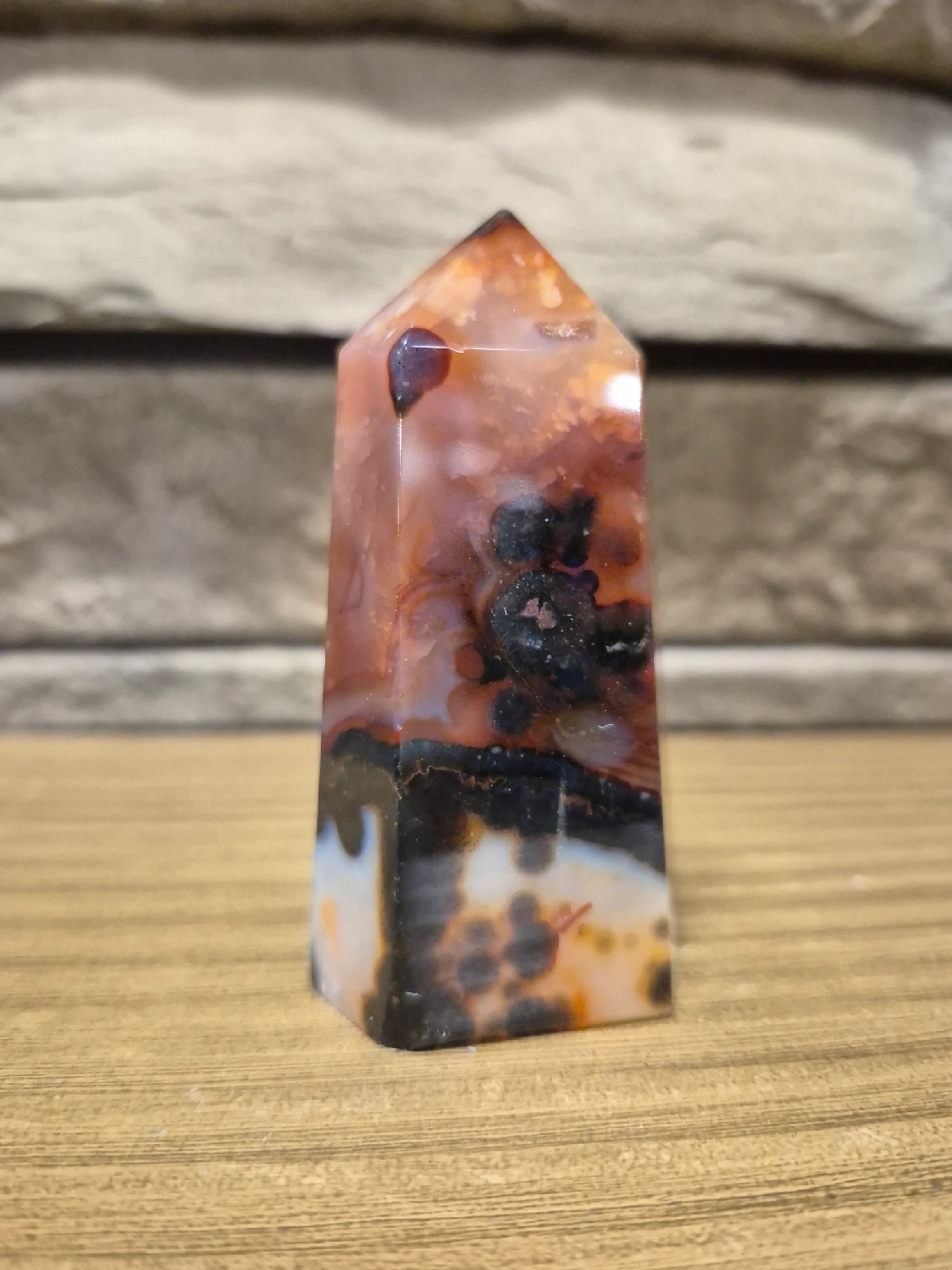 Selling a beautiful Carnelian stone tower point. This crystal is known for its vibrant colours and unique patterns. Perfect for adding a touch of natural beauty to your space!