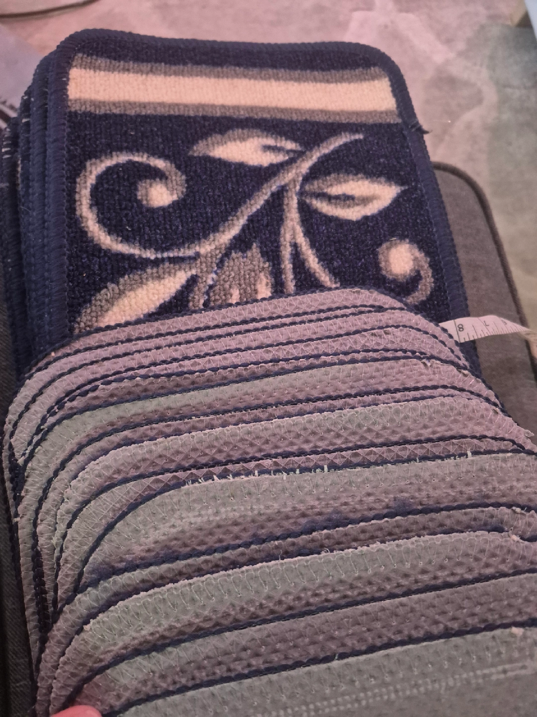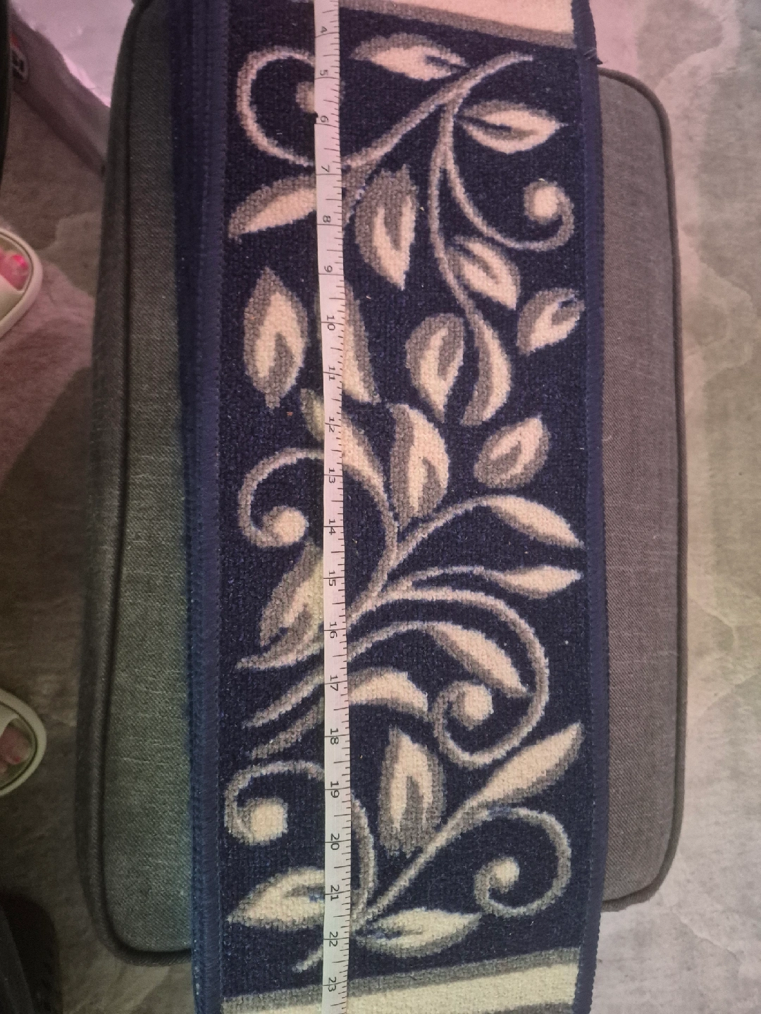 I have a set of carpet stair treads for sale! They feature a nice blue floral pattern. The approximate dimensions are: - 9 inches wide - 25 inches long There are 14 in the set. Selling as a set. They're in great condition and ready to be used in your home.
