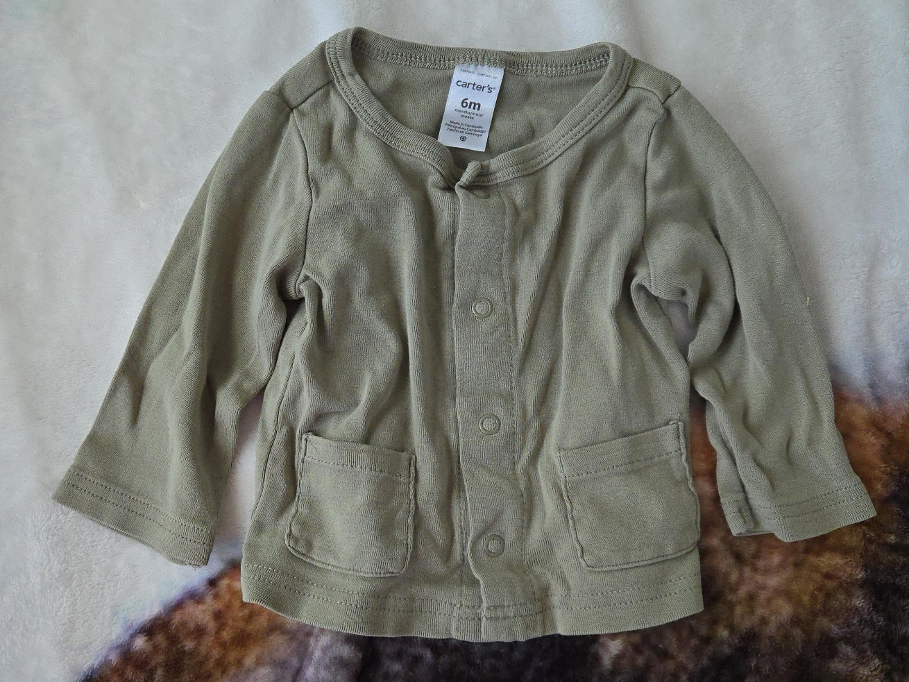 A cute and gently used Carter's cardigan for your little one! This cardigan is size 6M and comes in a lovely olive green colour. Perfect for layering and keeping baby cozy.
