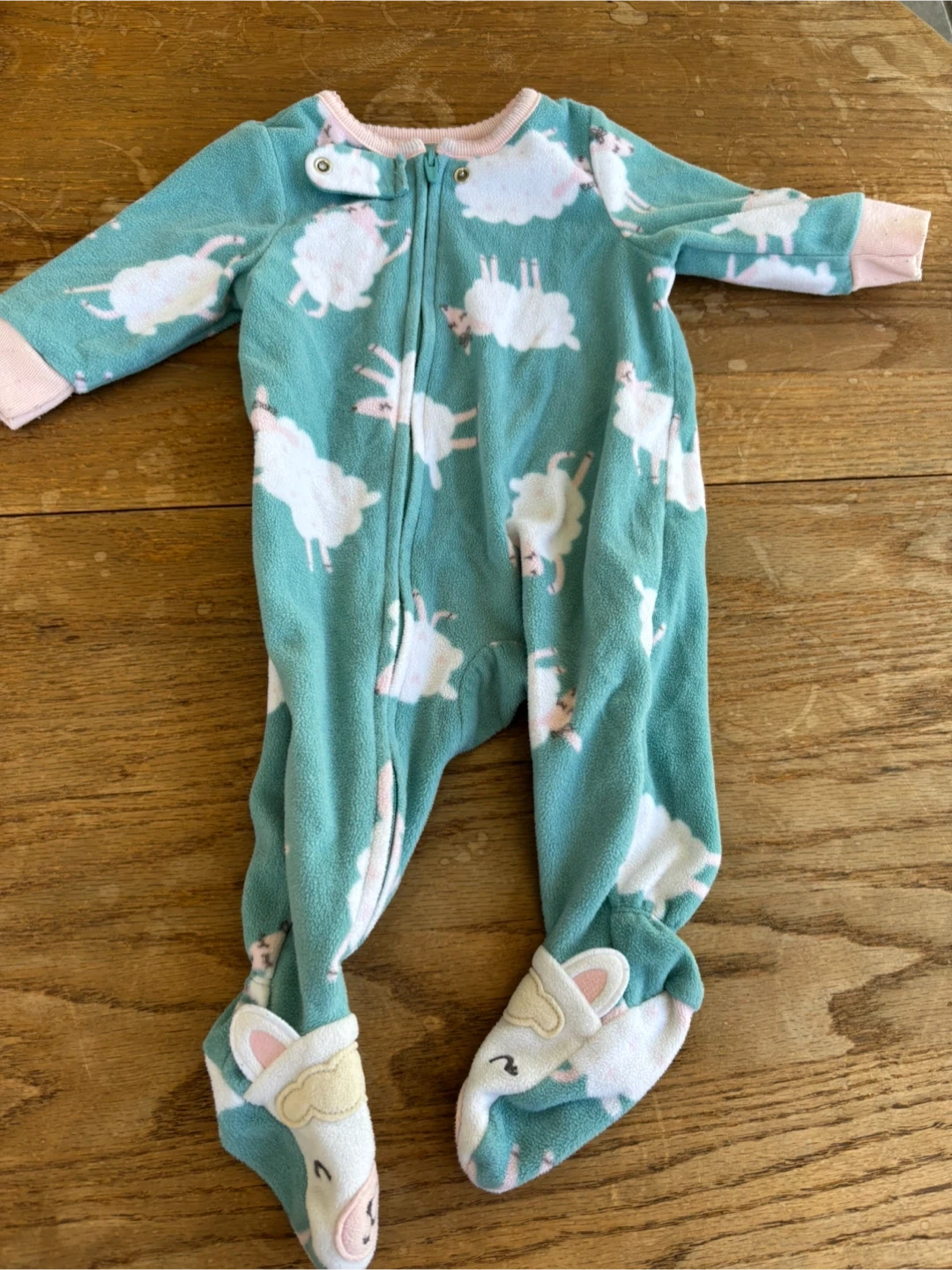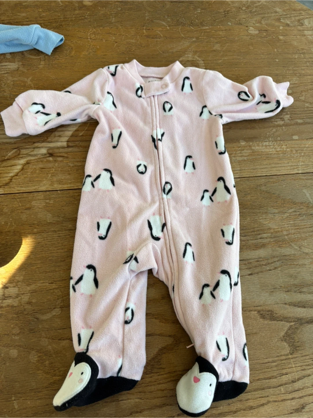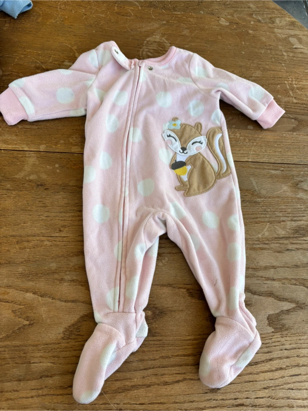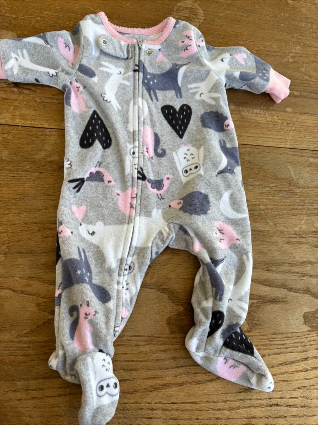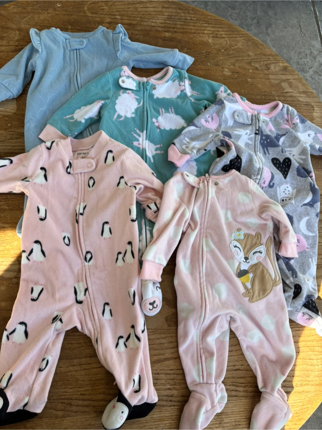 A bundle of five Carter's baby footed pajamas! Size 3 months. They come in various cute patterns and colours, perfect for keeping your little one cozy. (Lot #9)