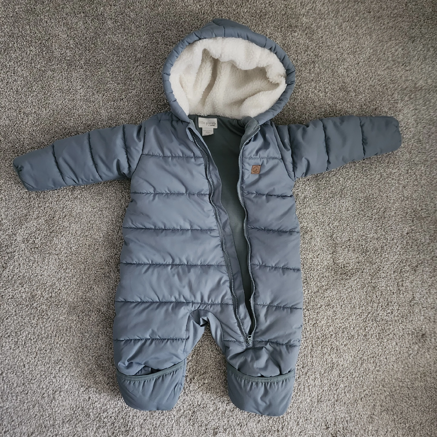 Keep your little one warm this winter with this adorable Little Planet snowsuit! It's in great condition and perfect for babies aged 3-6 months. The soft lining will keep them cozy, and the built-in foot coverings are super convenient for outdoor adventures. Barely Used in mint condition like new