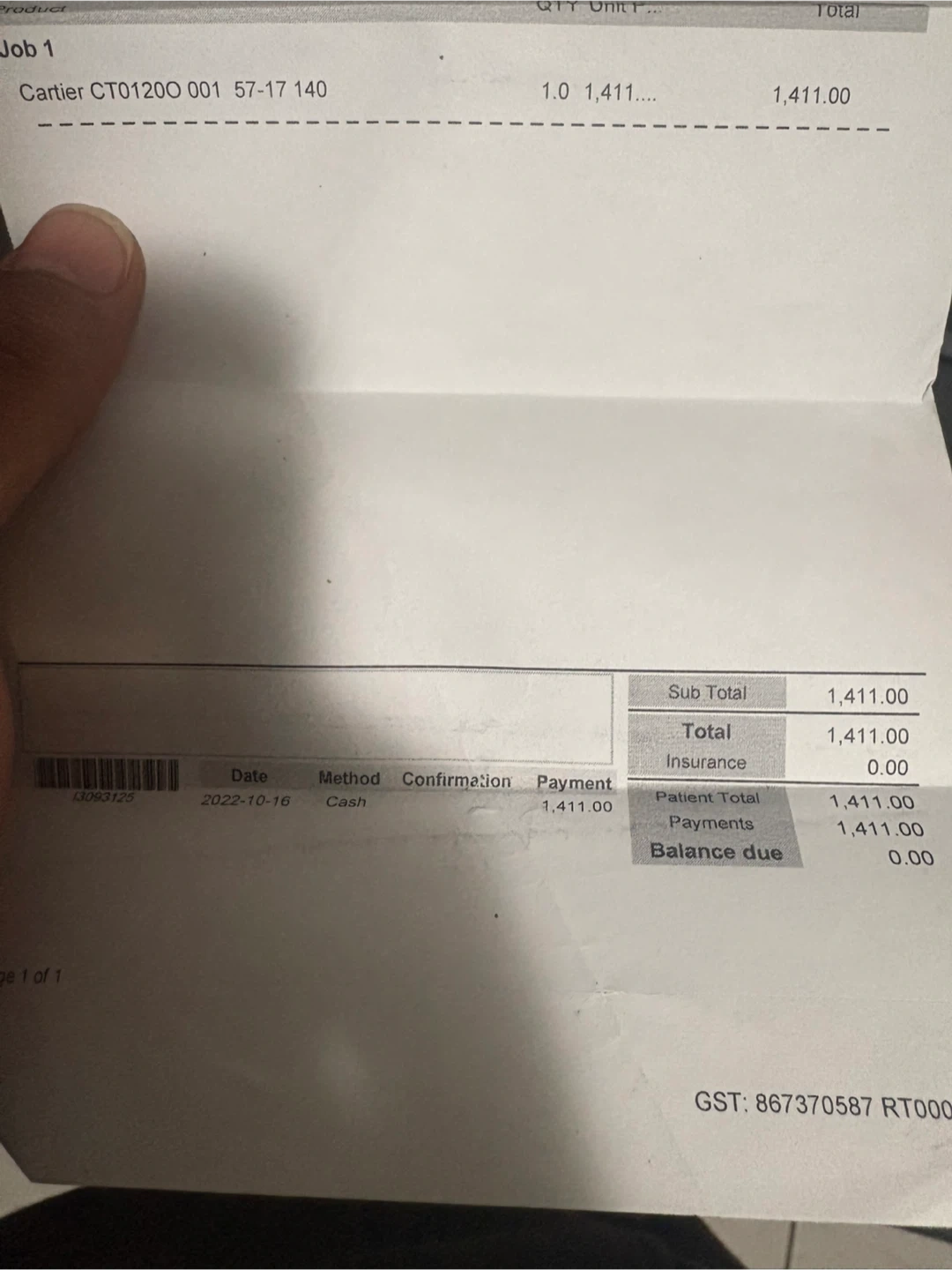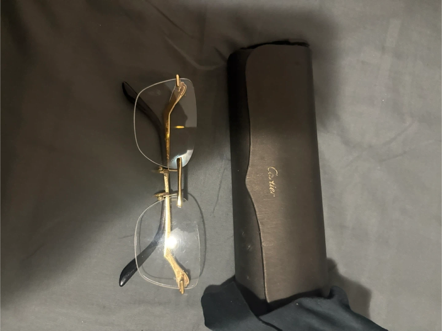 Selling a pair of Cartier CT0120O rimless eyeglasses. They're in great shape and come with the original case. Made in Italy. The receipt indicates they were originally bought for $1,411. A stylish addition to any wardrobe!